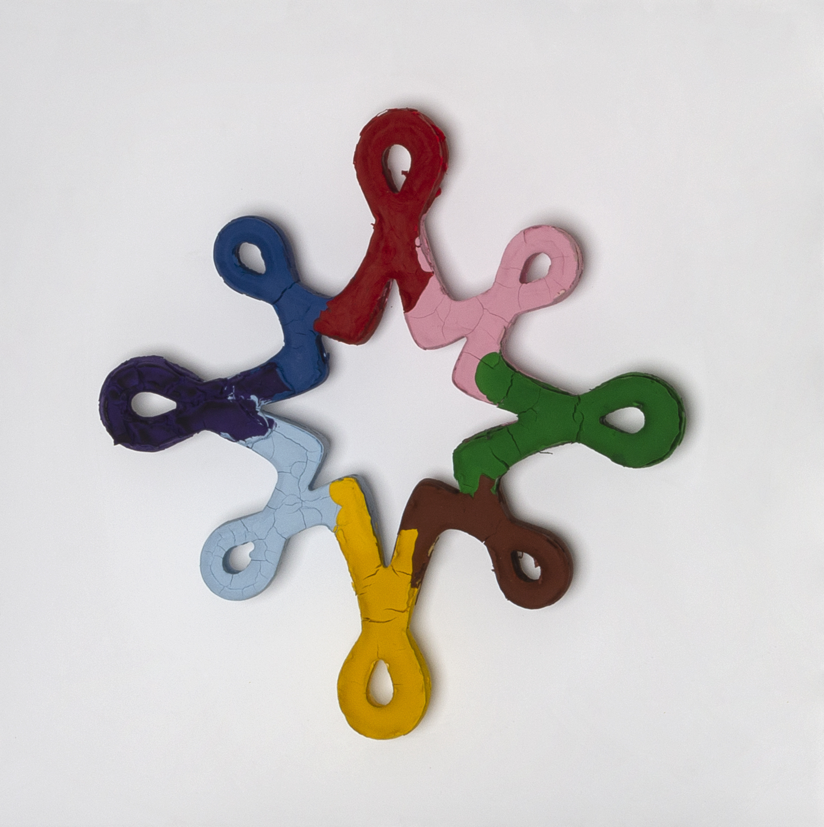 “Etimografia” (2014-2018) è un macro-progetto che vede l’artista impegnato nella creazione di ‘simboli’ che approdano alla produzione di nuovi grafemi e fonemi. Sculture in legno colorate con inchiostro nero per stampanti vivono in continua aggregazione e disgregazione come cellule modulari che scardinano le “gabbie iconografiche” che ci appartengono.