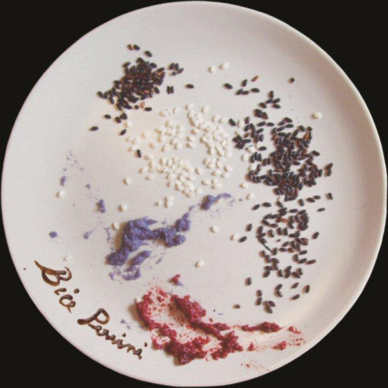 Il processo creativo come un’esperienza alchemica ha riattualizzato il passaggio dalla materia vile al quella nobile. E, come il fango può diventare oro, il riso può diventare altro, fino a raggiungere l’arte. La mostra- come tutte le precedenti di Bice Perrini- è una provocazione, un sasso lanciato nello stagno, un pungiglione che si conficca nella pelle e ci mette in allerta.