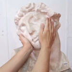 Il titolo della mostra, Invocazioni. La mia mortalità dovrebbe commuoverti a cura di Benedetta Casini, è tratto dalla poesia “Conversazione con una pietra” di Wisława Szymborska in cui la poetessa polacca si immagina di stabilire un dialogo con il soggetto litico. Nel corso della conversazione emergono le inevitabili distanze fra i due corpi, quello umano della poetessa e quello minerale della pietra, con le loro relative temporalità. Utilizzata sin dall’antichità per riprodurre fedelmente la figura umana e proiettarla nel tempo, oltre la vita del soggetto ritratto, la pietra si configura da un lato come elemento antropomorfo, plasmato dall’uomo a sua immagine e somiglianza, su cui convergono fantasie di animazione e vita. D’altro canto la sua temporalità dichiara la magnificenza di una natura che supera ogni misura umana, portatrice di una visione millenaria. La necessità di entrare in relazione con l’elemento minerale è espressa tramite conversazioni immaginarie e ibridazioni corporee che ridefiniscono i confini tra soggetto e oggetto, tra materia biologica e non biologica. In occasione della mostra le vetrate della sede espositiva, affacciate sulla Fontana del Moro in Piazza Navona, si trasformano in piattaforme di pensiero permeabili, dove la riflessione sul desiderio di trascendere il proprio tempo dialoga con uno degli scenari più rappresentativi del Barocco Romano.
