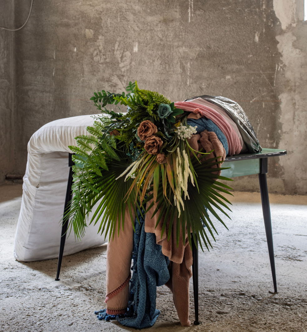Attraverso una tecnica pittorica del tutto originale, Matias Ercole (ARG) riflette sulla rappresentazione della natura selvaggia delle Americhe nella storia dell’arte. L’artista mette in relazione riferimenti iconografici fra loro distanti: dalle rappresentazioni antropofagiche di Tarsila do Amaral a quelle sublimanti di inizio secolo XIX del pittore tedesco Johann Moritz Rugendas.La grande tela installata al soffitto nega il proprio status di finestra illusionistica, per suggerire un’inversione prospettica e un’intrusione nello spazio circostante. La tecnica compositiva rivela una tensione fra pittura e disegno: in un primo momento l’artista ricopre uniformemente la superficie con uno strato pittorico sul quale interviene poi rimuovendo la materia pittorica con strumenti graffianti. Ne risultano disegni in negativo, forme che emergono con diverse intensità da un substrato comune. Negli stessi spazi Chiara Bettazzi (ITA) indaga attraverso fotografia e installazione ambientale l’idea di trasformazione, mettendo in relazione il paesaggio industriale e urbano con l’elemento vegetale. Sin dagli esordi la sua ricerca è legata a una riflessione sull’accumulo di oggetti d’uso quotidiano e il loro riutilizzo in composizioni che evocano presenze animate. A Palazzo Braschi a prendere vita sono oggetti domestici assemblati a elementi vegetali. Ad animare queste nature morte dal carattere fantasmatico sono le fotografie, installate secondo una progressione sequenziale che testimonia la graduale trasformazione del soggetto.