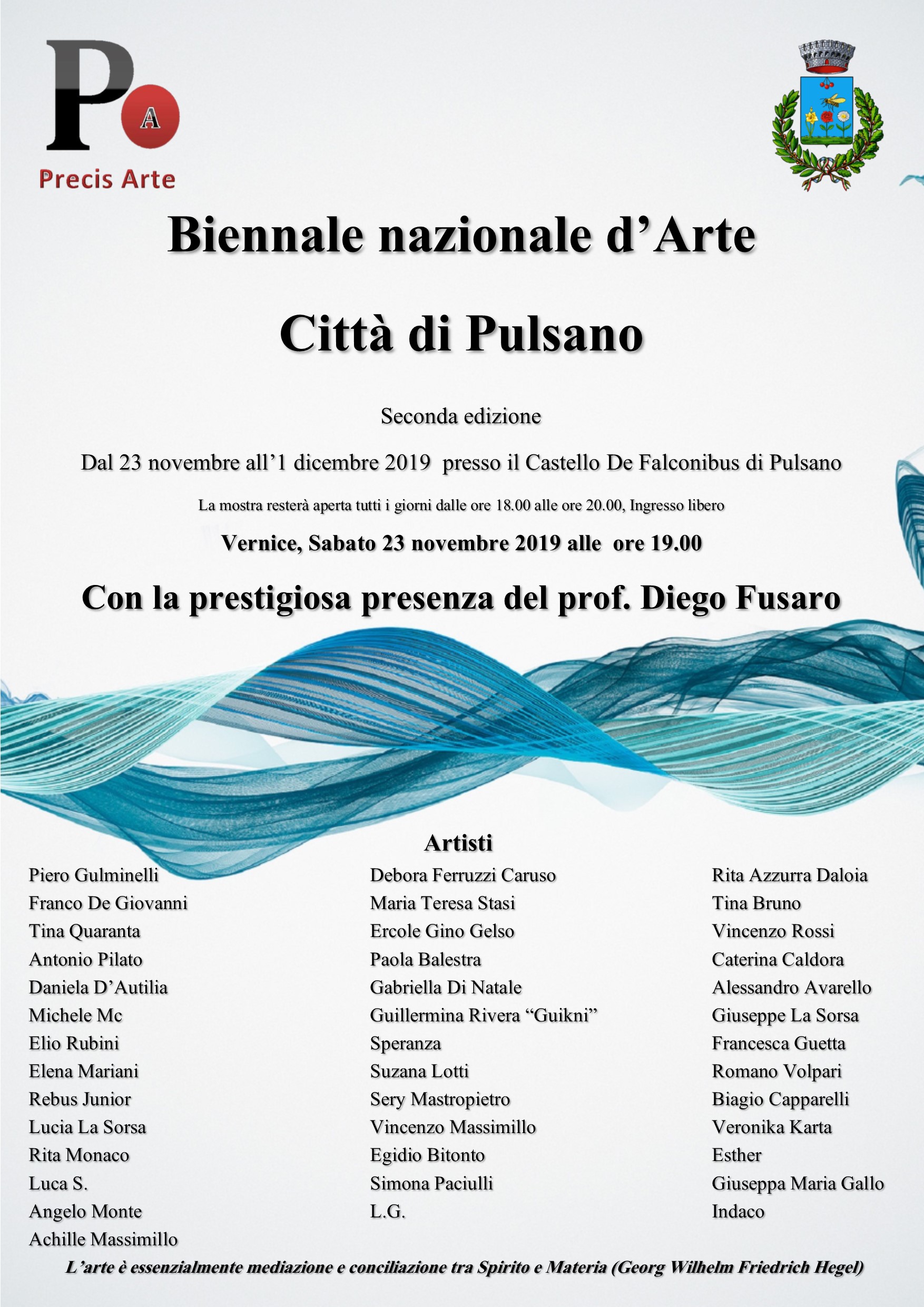 Ancora una prestigiosa Rassegna d’Arte organizzata dalla Precis Arte di La Sorsa Lucia che si avvale della presenza del filosofo Diego Fusaro.