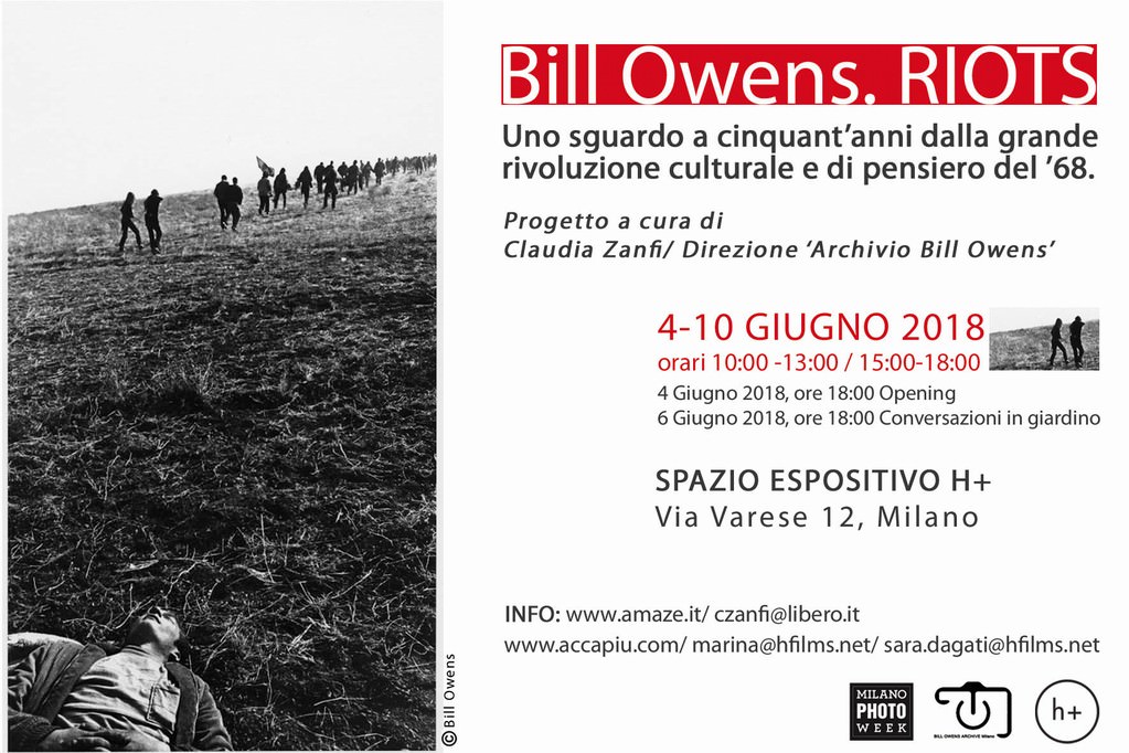 A Cinquant’anni dalla grande rivoluzione di pensiero del ’68, si presenta il lavoro del maestro della fotografia Bill Owens. Nella serie di immagini in bianco e nero Owens documenta il sorgere dei movimenti di protesta studenteschi nella città di San Francisco. Si tratta di una rivoluzione caratterizzata da ribellione, voglia di cambiamento e di rinnovamento. Utilizzando la fotografia come mezzo di cronaca sociale, l’artista compie una vera e propria indagine antropologica, raccontando la più importante svolta culturale in America e nel mondo.