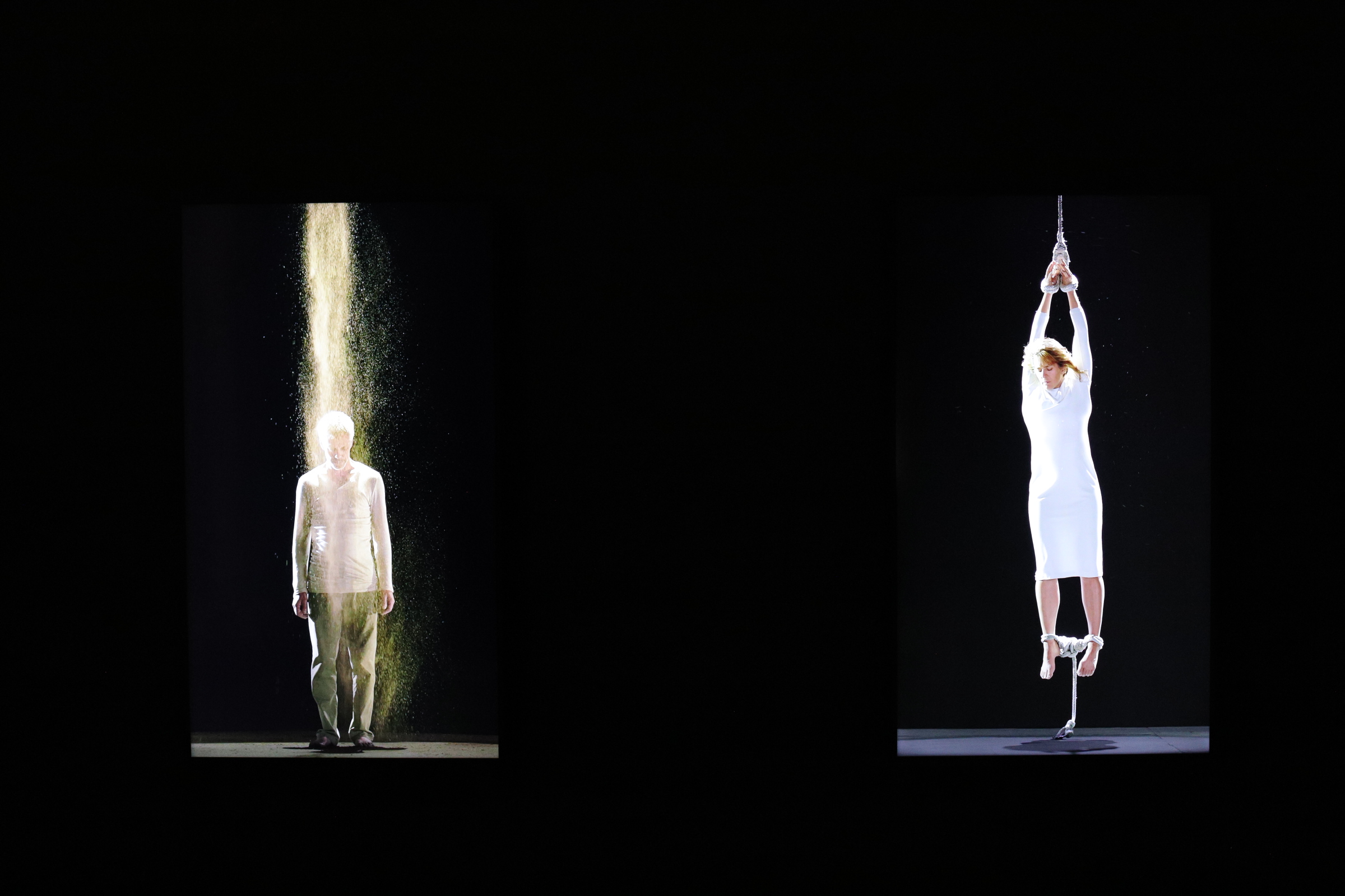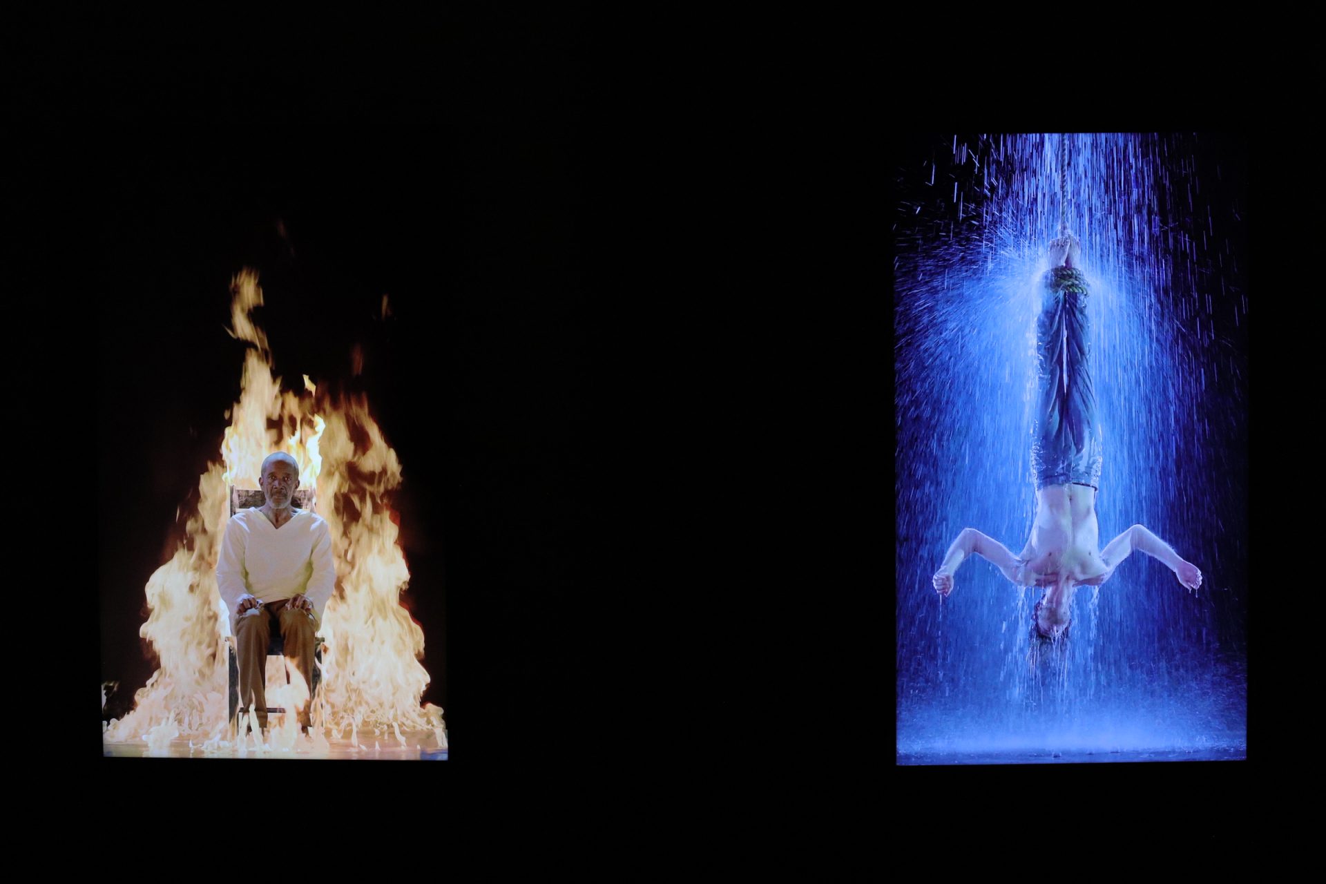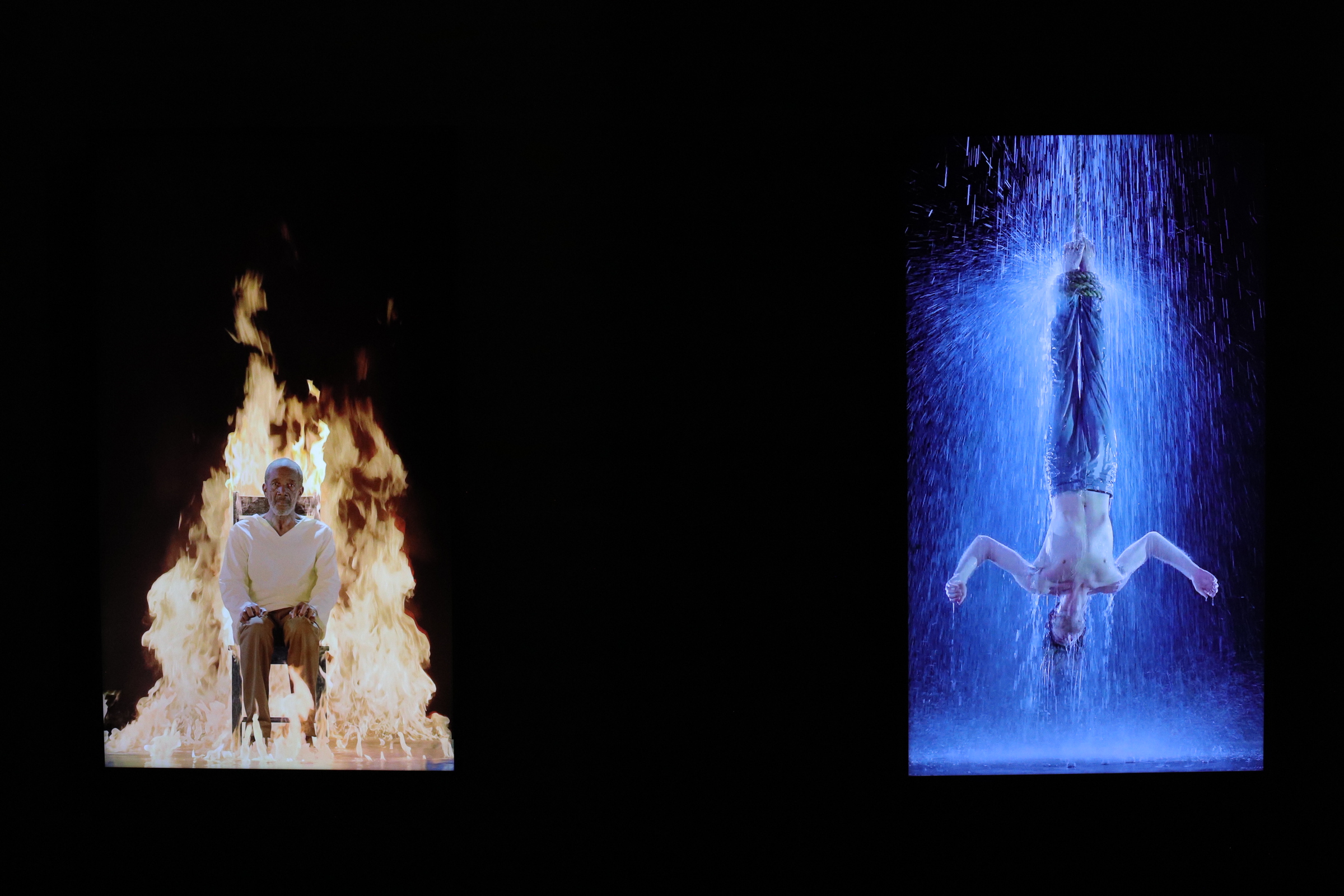 L’allestimento comprende cinque video-opere di Bill Viola: Earth Martyr, Air Martyr, Fire Martyr e Water Martyr (2014), derivate dall’installazione video permanente su larga scala Martyrs (Earth, Air, Fire, Water), e Three Women (2008 ), parte della serie Trasfigurazioni.