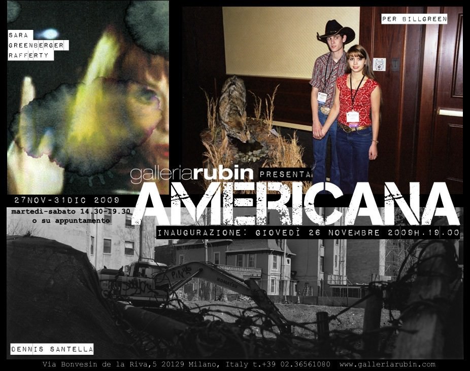 La Galleria Rubin presenta per la prima volta in Italia una collettiva di fotografi americani: Per Billgreen, Sara Greenberger Rafferty e Dennis Santella. La mostra si intola AMERICANA, come l’omonimo romanzo di Don De Lillo, in cui il protagonista attraversa gli Stati Uniti filmando la gente comune