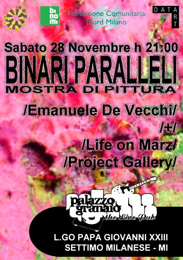 Il 28 novembre, alle 21, inaugura la mostra di arte Moderna BINARI PARALLELI, con gli artisti Emanuele De Vecchi, LifeonMarz Prj, Julia Rossetto, Michele Piasentini.