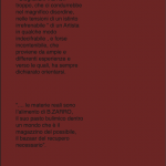 “Biografia… ma non troppo, che ci condurrebbe nel magnifico disordine, nelle tensioni di un istinto irrefrenabile” di un Artista in qualche modo indecifrabile, e forse incontenibile, che proviene da ampie e differenti esperienze e verso le quali, ha sempre dichiarato orientarsi.