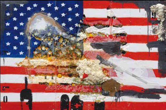 Una raccolta di opere che ben rappresenta le ultime svolte concettuali che l’artista ha vissuto, incentrate sul racconto dell’eterno rapporto tra l’uomo, la bugia e il divino. Con questo nuovo allestimento Bios pertanto vuole non solo presentare un excursus della propria produzione artistica, contrassegnando un punto di maturazione, ma anche lasciare intravedere le nuove stagioni della sua vita di artista che usa i propri linguaggi in maniera forte e con un accento critico mai superficiale. E lo fa sia attraverso opere appartenenti alla collezione degli Angeli, già esposte in varie occasioni, una tra tutte al S.I.A. Guest di Rimini, evento fieristico per eccellenza del settore hotellerie, sia attraverso le opere del 2010, come America che ritrae una bandiera a stelle e strisce sporcata da un simbolismo pesante supportato dal ricorso all’uso della resina, un materiale caro all’autore. Altro esempio del nuovo corso artistico, sviluppo e approfondimento del percorso seguito da Bios, è Achaiah e Tre Pulcini, in cui il tricolore italiano è anch’esso trasfigurato nell’ottica problematica della rivisitazione del concetto d’identità nazionale.