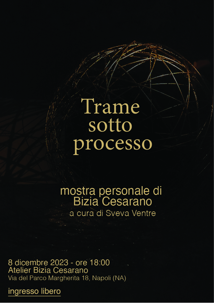 Trame sotto processo è la prima personale dell’artista Bizia Cesarano, giovane promessa della scena artistica partenopea. La mostra, a cura di Sveva Ventre, ripercorre i primi anni di produzione dell’artista e riflette sulle sovrastrutture che limitano l’espressione e l’evoluzione individuale.
