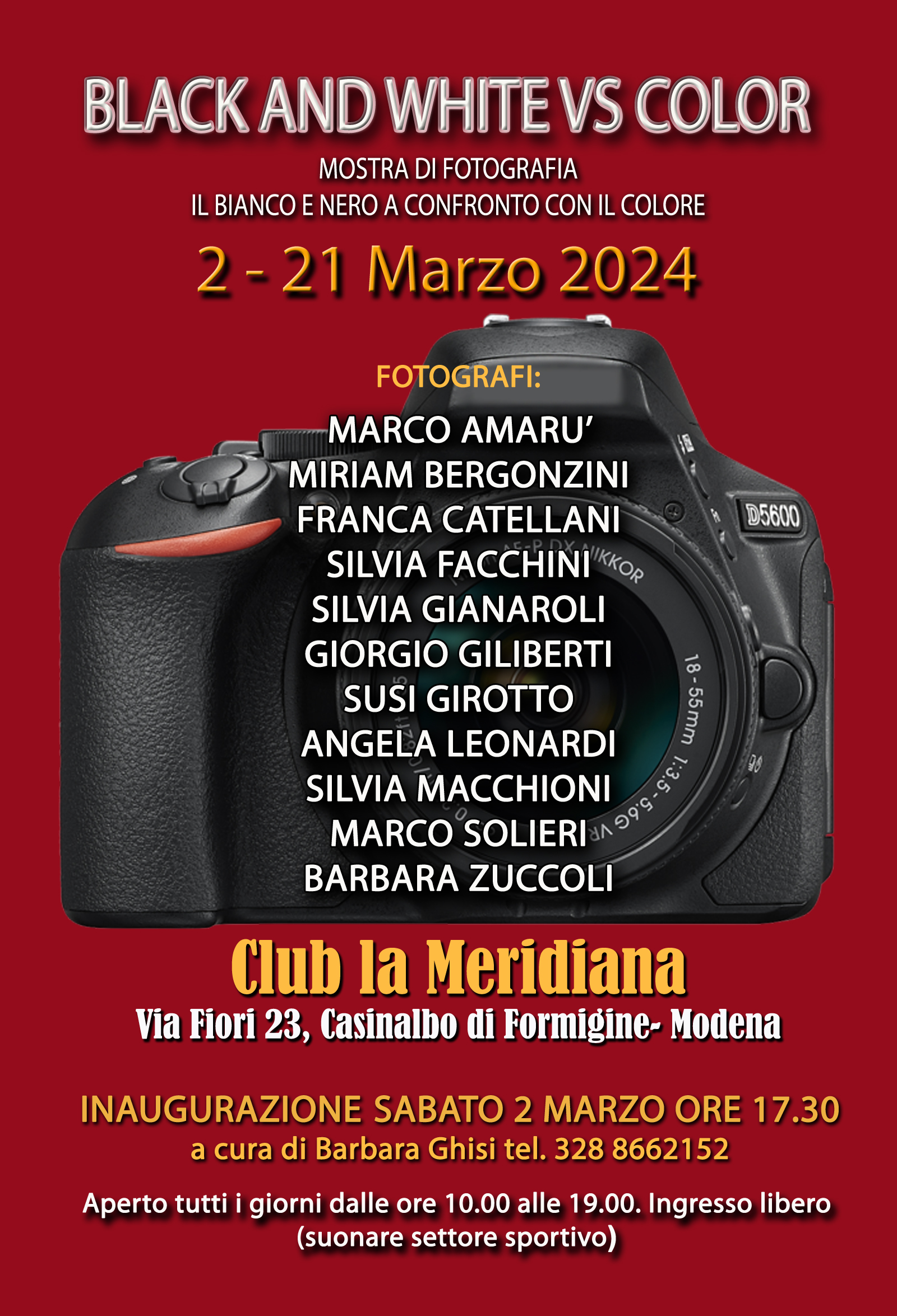 2 Marzo 2024, La curatrice Barbara Ghisi presenterà gli 11 fotografi nella villa settecentesca del Club La Meridiana a Casinalbo di Formigine (MO) dalle ore 17.30