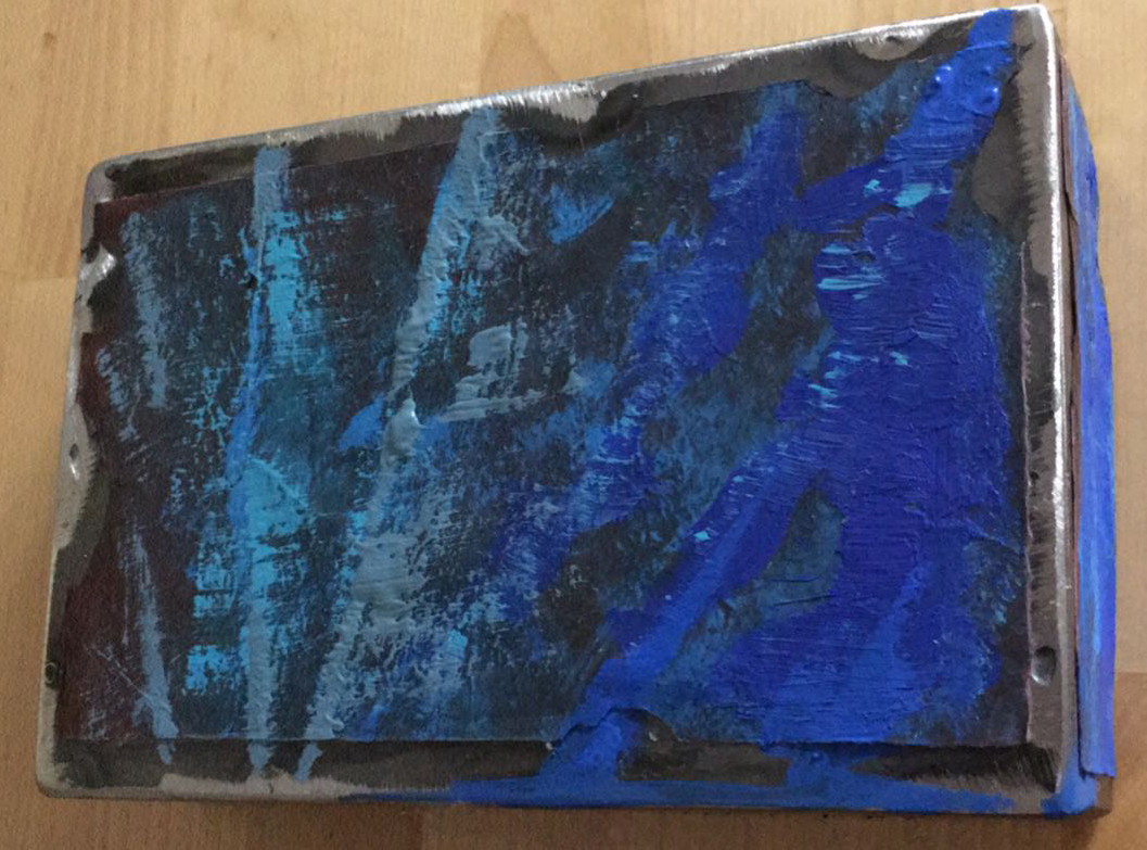 Dai cieli di Giotto ai monocromi di Yves Klein, il colore blu nelle sue infinite sfumature ha da sempre intrigato artisti di tutti i tempi. Il blu è il colore della trascendenza, dello spirito per il richiamo al cielo e quindi al divino, ma anche allo stesso tempo alle profondità marine e a quel punto di infinito in cui cielo e mare si congiungono, sancendo l’unione tra gli elementi aria e acqua. Squarci di blu intenso in un pallido cielo attraversano le tele di Eugenio Galli, mentre un mare calmo (o un cielo sereno?) è svelato dietro una cortina bianca nell’opera tridimensionale di Isa Locatelli. Legni azzurri imbevuti e dipinti di acqua di mare colorano le sculture lignee di Sonia Scaccabarozzi, mentre il ricordo del mar Egeo si rincorre nelle infinite sfumature acquee dell’opera di Valentinaki. Sono cieli himalayani quelli tratteggiati sulle carte nepalesi di Tiziana Priori leggere come bandierine di preghiere al vento ma ancorate a solidi supporti metallici. Infine una campitura cerulea irrompe nei toni sabbiosi dell’opera materica di Brunella Rossi.