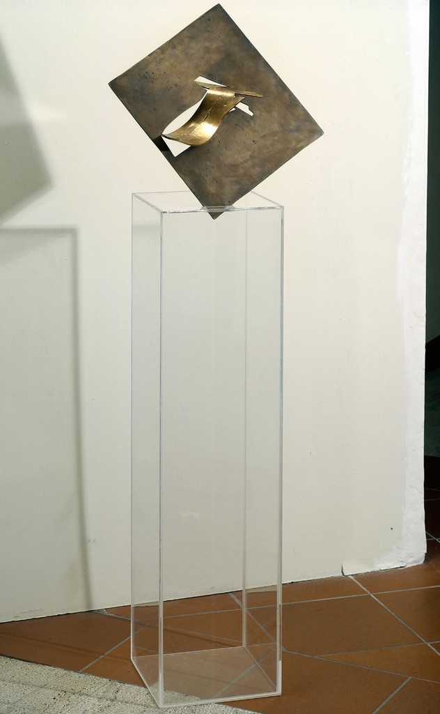 La Molla in ferro sospesa di Isabella Nurigiani costituisce lo strumento tramite il quale si tenta di compiere il grande salto al di fuori della Gabbia di bLuE, costruita da fasci di luce laser. La Gabbia assume quindi la forma di un Iperboloide Iperbolico, figura geometrica appartenente alla famiglia delle quadriche, che si ottiene con fasci di linee rette: il risultato invece è dato da linee che non hanno nulla di retto. La logica matematica quale struttura interpretativa della realtà si scontra con il desiderio di fuga e conferma una fondamentale antitesi tra razionale e irrazionale. Anche i materiali utilizzati, ferro e fasci laser, nella loro contrapposizione sostanziale, diventano elementi eversivi: bianco e nero, solido e aereo, statico e dinamico. L’entrata nello spazio interno del teatro si trasforma, quindi, in un tentativo di evasione per accedere ad uno spazio e ad un tempo diverso, non solo artistico, non solo teatrale.