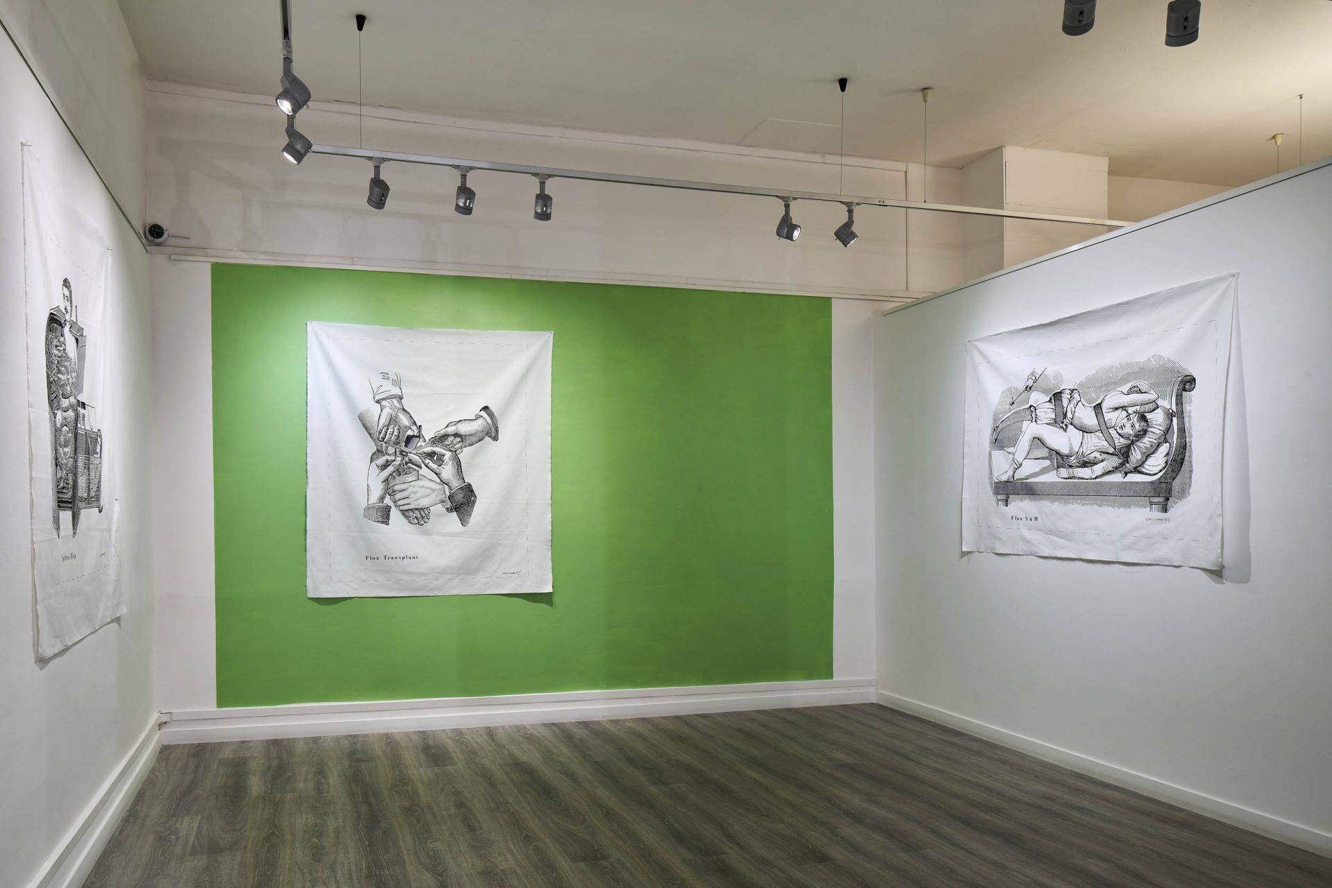 In continuità con la precedente mostra “Flux Motus” (maggio-giugno 2023) trova sostanza e sviluppo l’esposizione di una sequenza di opere straordinarie che fanno parte di un progetto di lavori realizzati in Italia dall’artista. Infatti le serigrafie su tela prodotte dal collezionista ed editore veronese Francesco Conz nella seconda metà degli anni’80, in simbiosi con i principali esponenti del gruppo Fluxus, restano uno dei momenti più importanti dell’editoria artistica contemporanea. Costituiscono un unicum non solo perché hanno dimensioni importanti, ma anche perchè gli artisti vi si sono dedicati con impegno straordinario. Sono multipli che hanno il sapore degli originali e costituiscono anche qualcosa che deve essere mostrato, esposto, che non può giacere in un cassetto, ma deve invadere lo spazio, fluttuare e muoversi al primo alito di aria. Possiedono la leggerezza del Fluxus, la non perentorietà né autorevolezza, l’ironia di essere qualcosa che possa portare nel mondo il verbo “fluxare”.