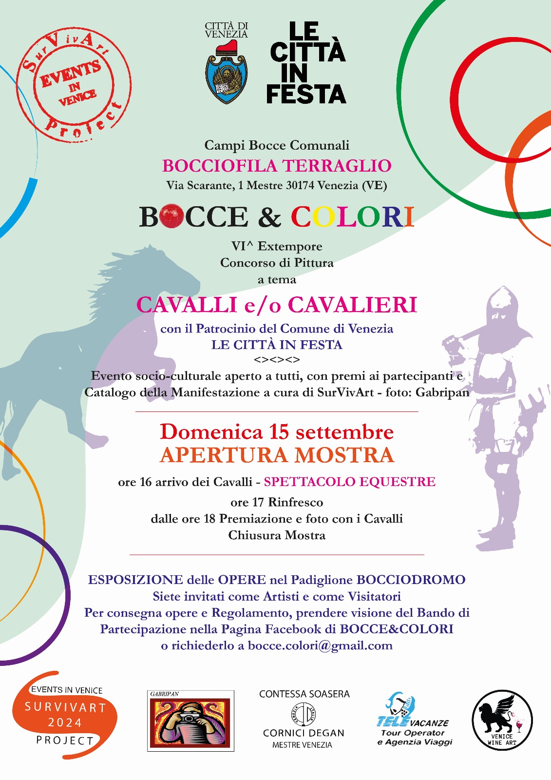 La Bocciofila Terraglio - Campi Bocce Comunali, di Via Scarante, 1 Mestre Venezia organizza per domenica 15 settembre, la manifestazione BOCCE&COLORI giunta alla sua VI^ edizione, con Mostra-Concorso di Pittura e Spettacolo Equestre.