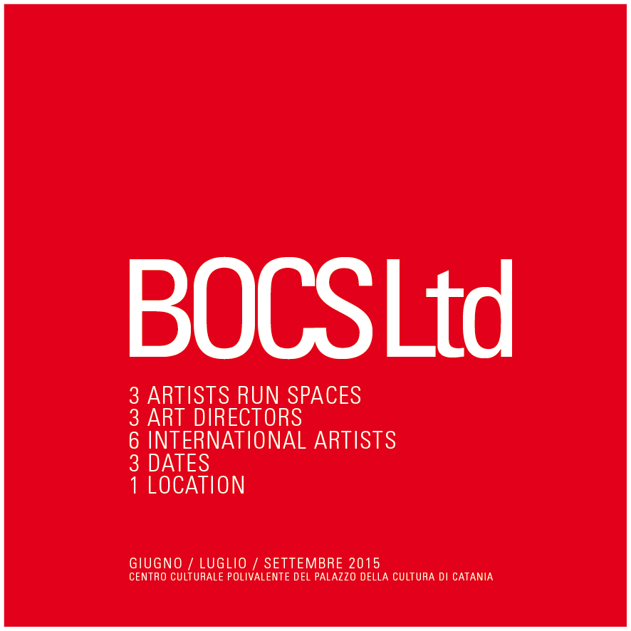 BOCS Ltd (Catania / Berlino / Londra) è l’ultimo progetto di network internazionale ideato e organizzato da Giuseppe Lana e Claudio Cocuzza - rispettivamente direttore artistico e direttore tecnico di beBOCS - per supportare gli artisti che gravitano intorno al primo artist run space costituito a Catania, in un confronto internazionale in grado di alimentare lo scambio di idee sui nuovi processi di lavoro e gli approcci al contemporaneo. Catania, Berlino, Londra sono le città che BOCS Ltd intende collegare fisicamente e metafisicamente attraverso cicli di mostre itineranti tra il 2015 e il 2016. Propedeutico al neo-nato progetto è stato lo scambio avvenuto lo scorso anno a Berlino tra artisti siciliani e artisti dello spazio espositivo Schau Fenster. Oggi, proseguendo nel suo percorso, BOCS amplia il raggio di azione coinvolgendo Londra, importantissima piattaforma internazionale per gli artisti di tutto il mondo e punto nevralgico dell'arte e dell'economia europea. Il Centro Culturale Polivalente di Catania è il luogo che accoglie e favorire il confronto tra gli artisti e spazi espositivi coinvolti nel progetto. Nella sala del Palazzo della Cultura di Catania, dedicata all’arte contemporanea, si alterneranno tra giugno, luglio e settembre tre mostre di artisti scelti dai rispettivi spazi espositivi e che caratterizzano le loro realtà artistiche.