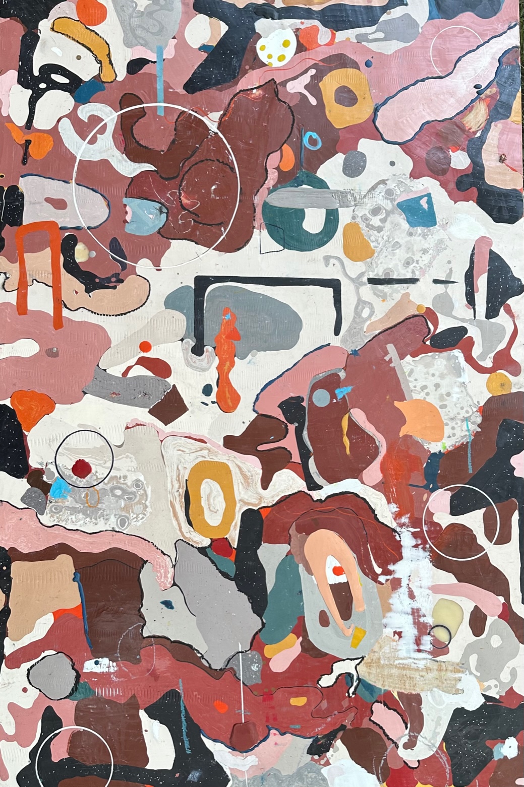 Bonnie Eisen costruisce un suo particolare alfabeto astratto fatto di geometrie fluide, segni interconnessi che nel rispondersi armonico delle forme, limitano, dividono e poi alla fine si incontrano. A ben vedere le sue opere permettono una doppia lettura, richiamano organismi visti al microscopio oppure planimetrie terrestri catturate dallo spazio. Le ragioni di questa ambivalenza altezza/profondità, vanno come è ovvio ricercate nel reverenziale rispetto per tutto ciò che travalica i limiti dell’umano dominio, per i fenomeni più inconoscibili, dall’evoluzione misteriosa ed insondabile.