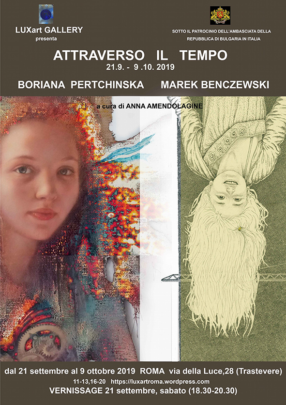 In mostra i dipinti di Boriana Pertchinska, di origine bulgara, e i disegni di Marek Benczewski, di origine polacca, ma entrambi residenti a Berlino da molti anni, a confronto sul tema del tempo. Per la prima volta in Italia i due artisti presentano le loro originalissime opere in questa galleria di Trastevere a vocazione internazionale con Art Director Aneta Rinaldi.