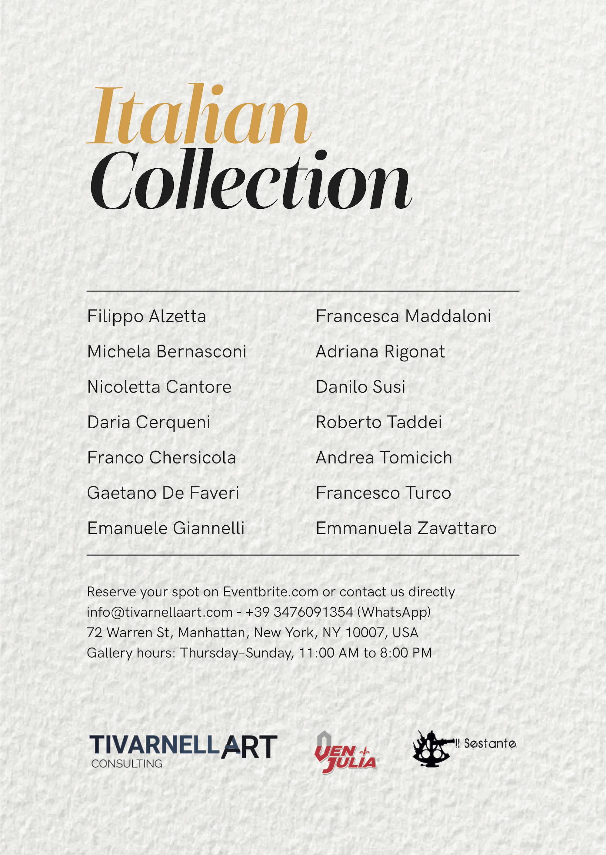 Il curatore Enea Chersicola: “Dopo due edizioni di grande risposta da parte del pubblico americano, presentiamo un nucleo di opere inedite, selezionate per interrogare la sensibilità contemporanea, non per generare art entertainment.