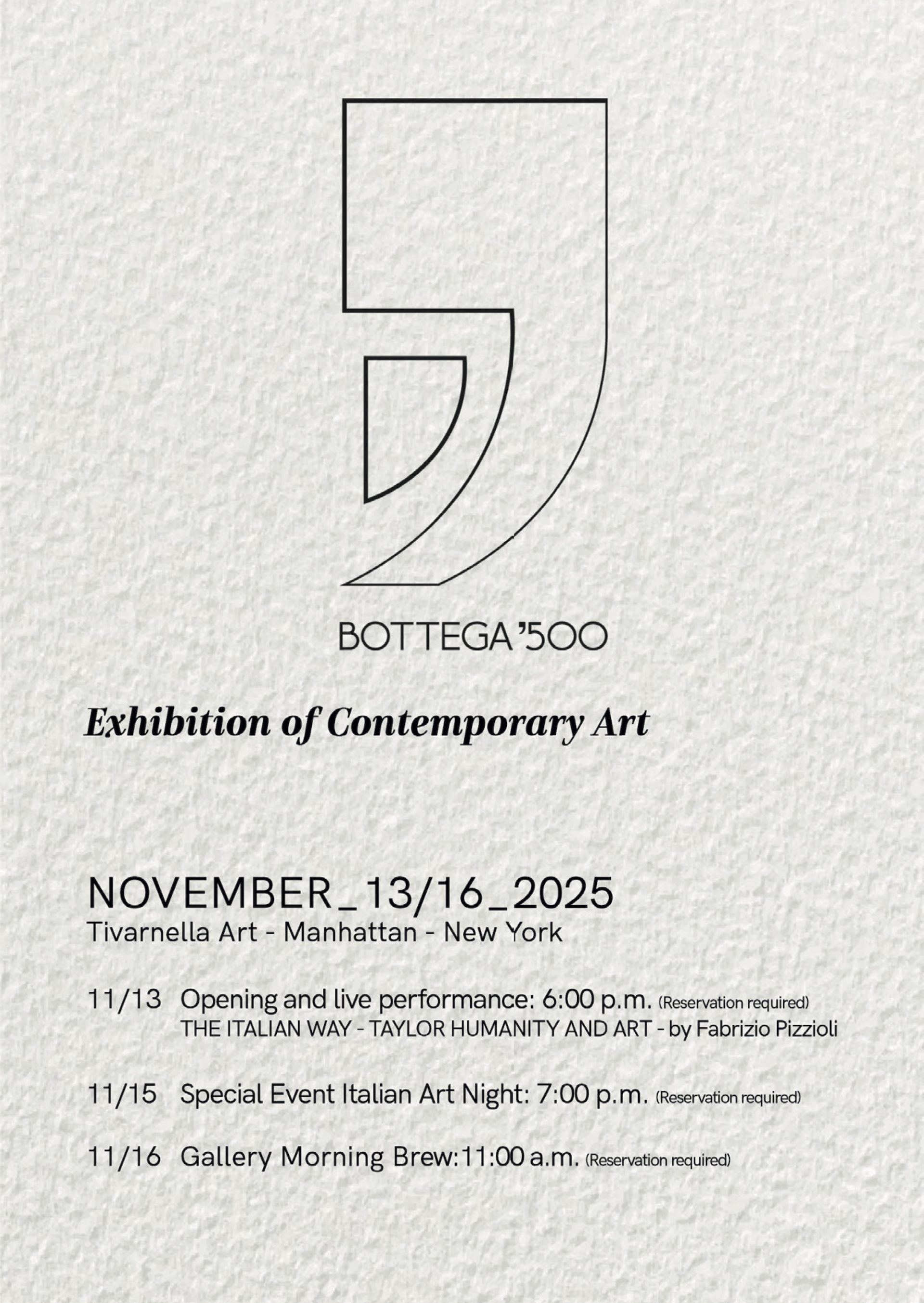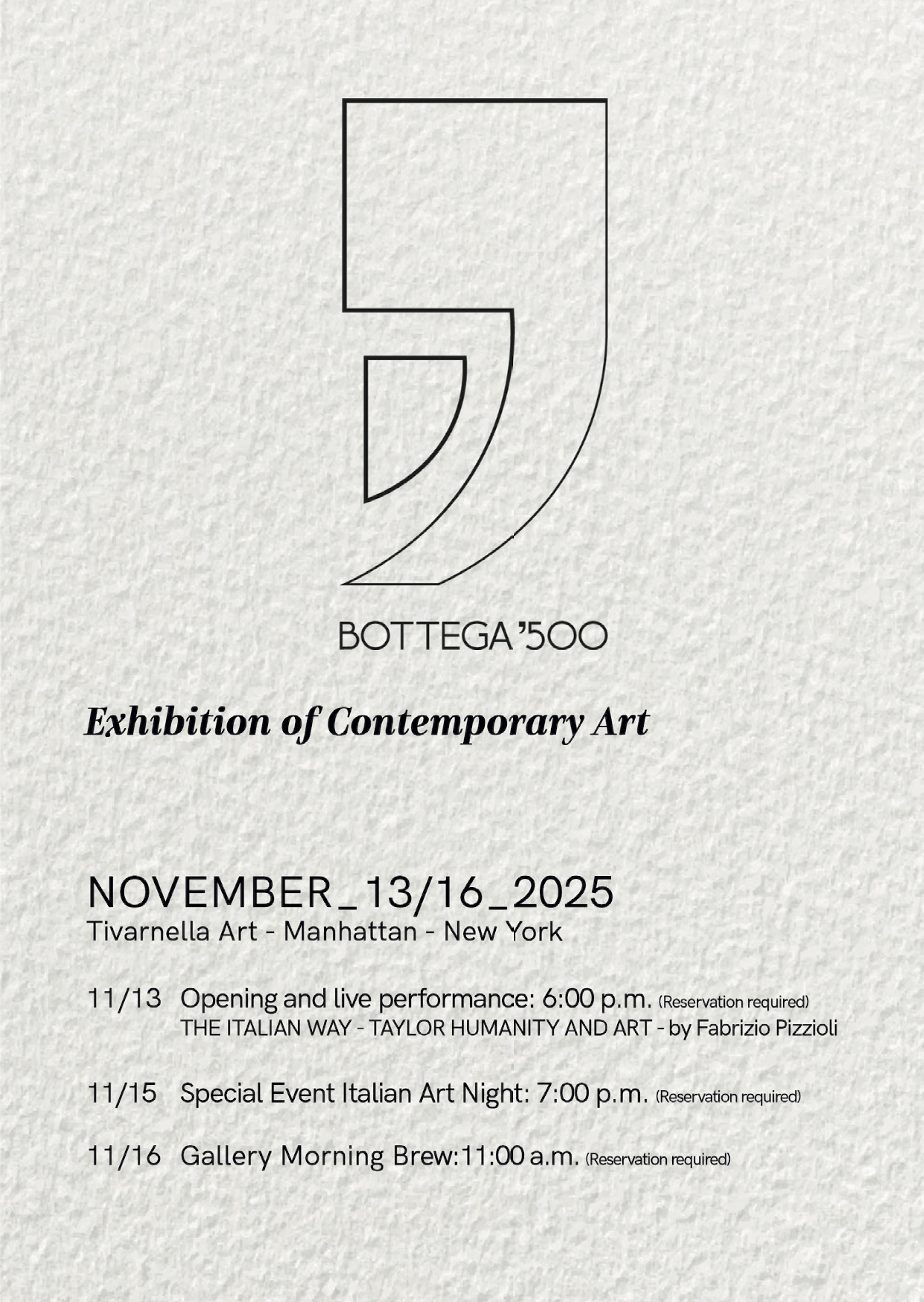 Il Tivarnella Art Consulting di Trieste presenta a New York la nuova edizione di Bottega ’500, collettiva che riunisce quattordici autori italiani contemporanei in un dialogo che incrocia la ricerca odierna con la memoria culturale del Rinascimento italiano.