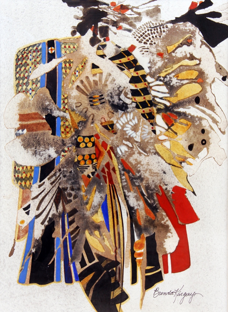 Dopo la sua prima presenza alla galleria Cortina nel 2013, Brenda Kingery torna ad esporre i suoi dipinti legati al mondo degli indiani d’America essendo essa stessa appartenente alla nazione di nativi Chickasaw che trova il suo territorio d’origine nel sud-est degli Stati Uniti. Non a caso la sua mostra si intitola Pow wow perché i suoi segni pittorici sembrano davvero danzare sulla tela portando gli spettatori nel mondo amerindo. Nella sua pittura, che si può definire carica di simbolismo narrativo, vediamo vibrare le piume dei copricapi, volteggiare i colori degli abiti tradizionali, i colori naturali della terra e del cielo, dell’amore per la natura per la vita per il proprio paese, per le proprie tradizioni e i propri antenati.