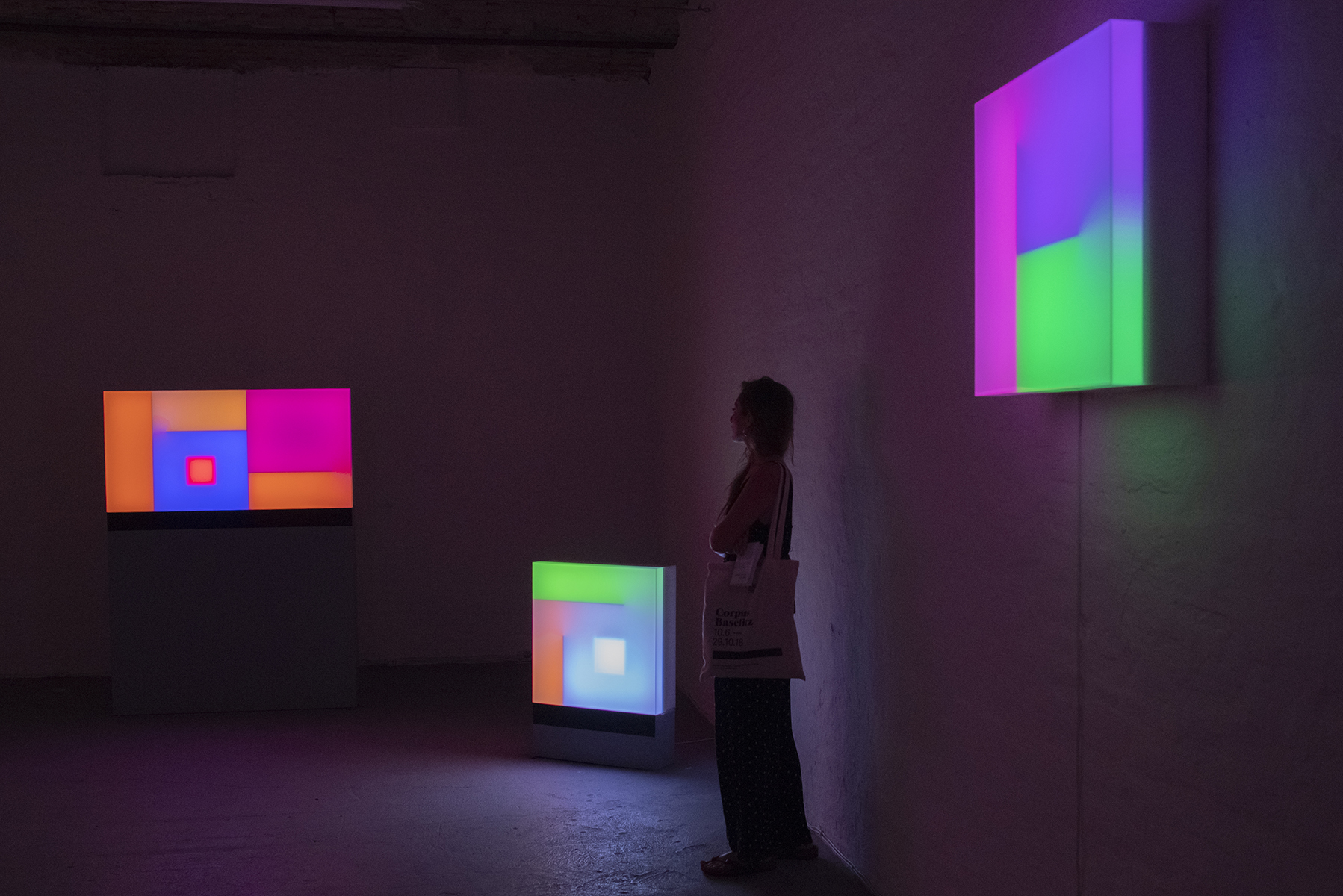 La mostra presenterà una sala dedicata ai Lightboxes, ognuno dei quali sfocerà in una infinita combinazione di seducenti “colori” auto-generati usando una serie di luci a LED intrecciate, il tutto accompagnato da una composizione musicale incisa appositamente per la mostra. Estendendo i confini temporali grazie ad un’opera che solo apparentemente non ha né inizio né fine, né finalità, Eno “incoraggia le persone a rimanere in un posto per un po’ “. “Se un dipinto è appeso a un muro, non ci sembra che ci manchi qualcosa senza prestarci attenzione. Tuttavia, con musica e video, abbiamo ancora l’aspettativa di una sorta di dramma. La mia musica e i miei video cambiano, ma cambiano lentamente. E cambiano in modo tale che non ha importanza se ne perdi una parte”.