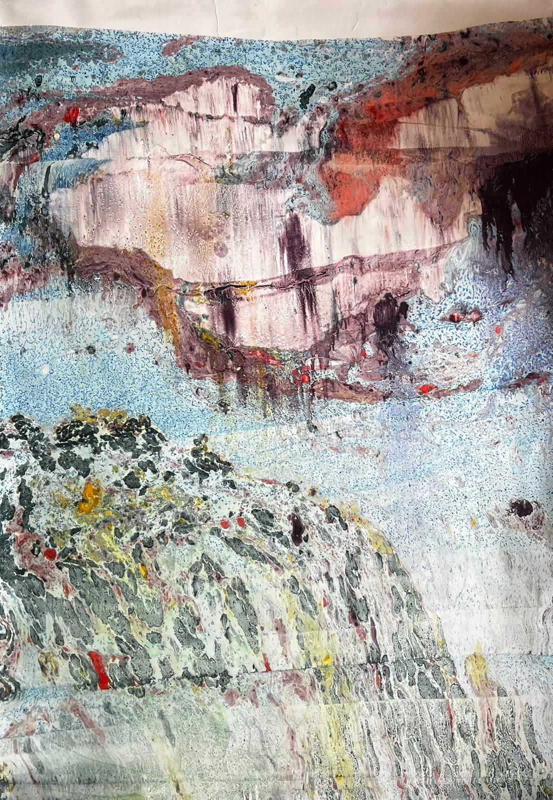 Come dichiara lo stesso artista:” ... guido le miscele di pigmenti fluttuanti sulla superficie finché l'immagine non si assesta, un fugace momento di equilibrio catturato prima che l'acqua si rimodelli. Queste opere non sono semplicemente astratte, sono registrazioni di presenza, consapevolezza e resa. Ingrandendo il processo tradizionale, invito l'ambiente fisico a partecipare: luce solare, temperatura e correnti d'acqua influenzano l'impronta finale.”