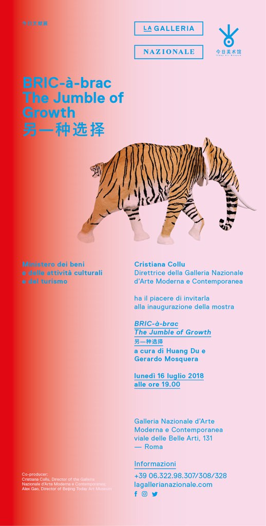 La Galleria Nazionale inaugura la mostra BRIC-à-brac – The Jumble of Growth – 另一种选择 a cura di Gerardo Mosquera e Huang Du. Una quarantina di opere di 26 artisti internazionali e due curatori provenienti da paesi agli antipodi – Cuba e Cina – con contesti culturali e geografici diversi, ma che condividono una scommessa comune sulle possibilità di lettura del presente.