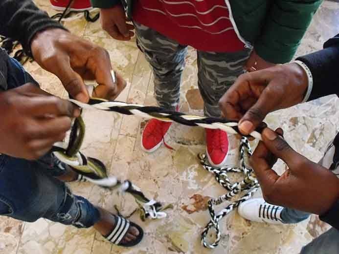 Jonida Xherri nel suo progetto di residenza che già a partire dal titolo Benvenuti si è focalizzato sul tema dell’accoglienza, individua nel filo che unisce le sue opere, la metafora di una interconnessione, l’intreccio di legami che annullano le differenze auspicando la possibile unione di tutti i confini. È un percorso centrato sui temi sociali e sullo scambio relazionale quello dell’artista, che mira a una fruizione attiva e polisensoriale dei suoi lavori. In tale ottica la Xherri ha coinvolto diverse comunità territoriali lavorando finora con 16 gruppi, quasi 400 persone: tra queste i Camminanti, gli ospiti di “Casa Tobia”, i migranti minori non accompagnati del progetto “I Care”, il “Centro Incontri Anziani”, gli studenti del Liceo di Scienze Umane, dello Scientifico, del Liceo Artistico e della scuola media Aurispa. Nei prossimi giorni sono organizzati laboratori con i detenuti del carcere e con le donne del corso di preparazione al parto. Mercoledì 21 febbraio dalle ore 9.00 alle 12.00 è prevista in tal senso un’azione nella piazza XVI Maggio nello spiazzo antistante il Teatro Tina Di Lorenzo. Qui tutti coloro che si sono incontrati con l’artista saranno invitati a intrecciare il filo insieme ai passanti. “L’incontro con i vari gruppi che hanno collaborato al progetto - spiega l’artista albanese - non si è limitato alla fase del laboratorio, ma è andato molto più oltre di quanto io avessi sperato, trasformandosi in un vero e proprio ‘legame di amicizia’ che continuerà nel tempo”.