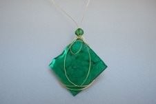 smeraldo, pietra lavica, e ancora plexiglass e vetro, incastonati in fili