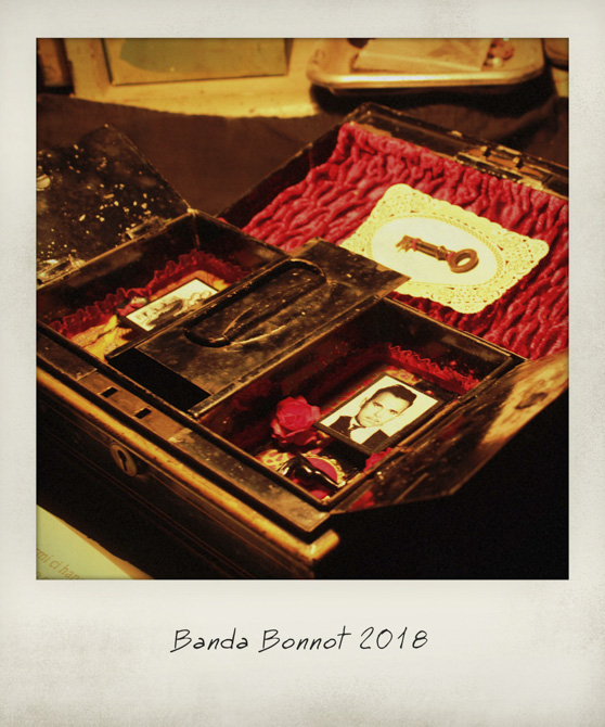 Ogni quadrito è un pezzo unico fatto a mano, al centro del quale, in un contorno di stoffe colorate, fiori e ornamenti dal sapore centroamericano, è posta una foto del personaggio, sempre accompagnata da uno o più oggetti in miniatura che ricordano la storia o una delle storie della sua esistenza.