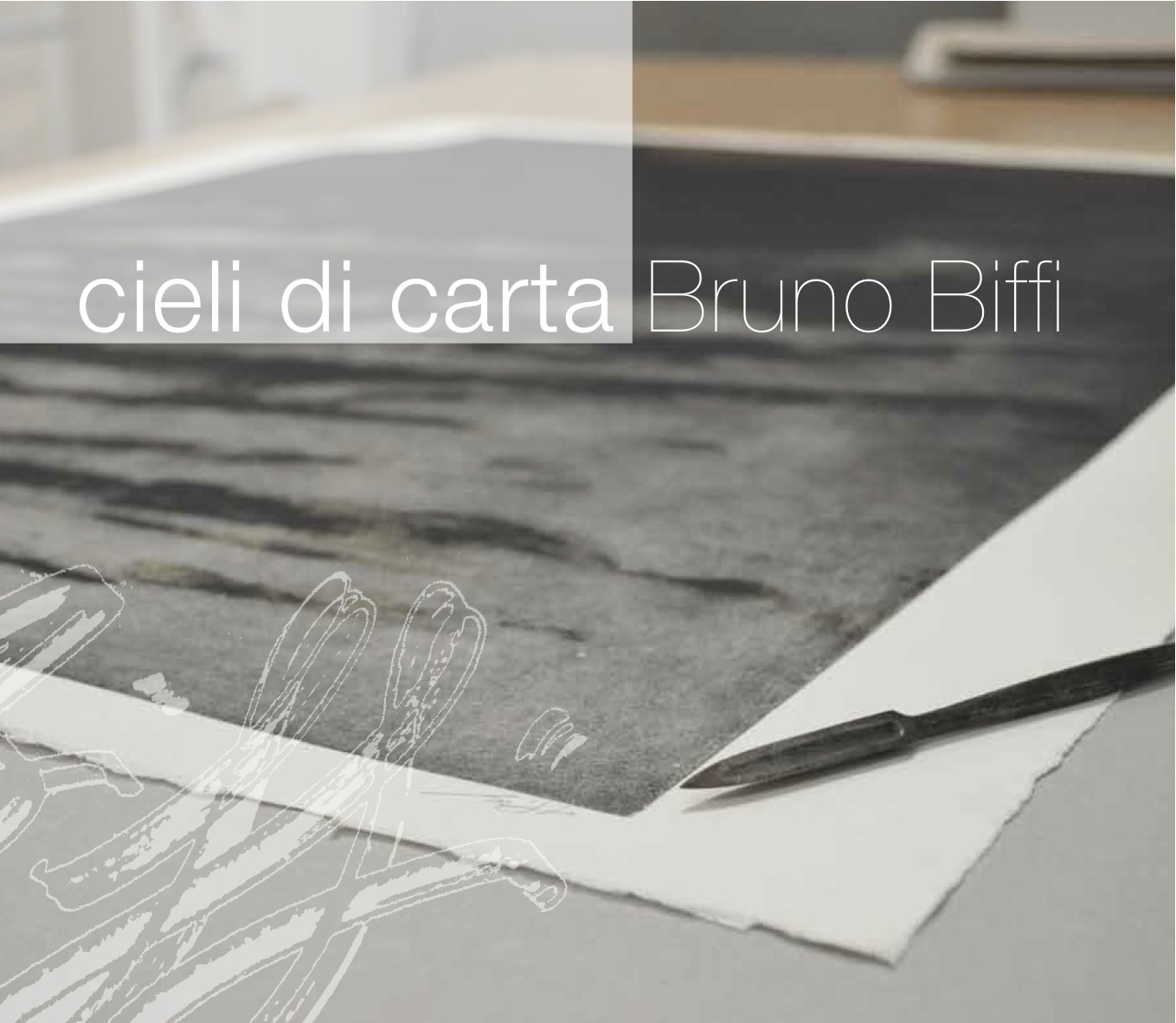 La storia dell’incisione e della stampa è stata sempre percorsa da importante vena sperimentale, quasi alchemica, che ha animato gran parte degli stampatori nelle varie epoche. Una vena presente anche nelle elaborazioni di Bruno Biffi, che attinge alla sua esperienza di stampatore e di fatto gioca con la matrice metallica e la sua natura bizzarra, fatta di ossidazioni, ruggini e imprevisti chimici. Qualche volta queste bizzarrie lo sorprendono, e da abile esecutore non si fa prendere alla sprovvista, ma sa invece beneficiarne per creare forme e atmosfere inaspettate. Nel ciclo dei cieli Biffi mostra una sfrontatezza che non appartiene al suo carattere, solitamente incline alla riservatezza; predispone la matrice con coperture di liquidi oppure vernice effettuate ad hoc, ideali per creare la nuvolaglia voluta, ma poi, in corso d’opera, queste reagiscono, si ribellano e la matrice offre ossidazioni repentine e incontrollabili. E’ in questo frangente che si svelano l’abilità del professionista e l’umiltà dell’uomo: infatti Biffi coglie queste variazioni come opportunità, assecondandole, per trasformarle in forme che più di quanto avrebbe forse voluto interpretano il caos della Natura.