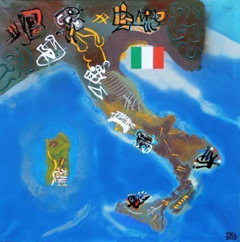 La serie di dipinti che affrontano il tema delle bandiere declinano tracce e simbolicità dei diversi paesi su spazialità “neo astratte”.