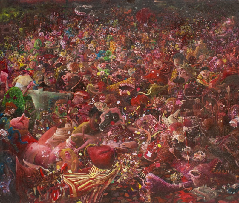 Eppure, nella mischia, si indovinano nette le creature stralunate, le maschere, i volti, tutte le sagome del perturbante.