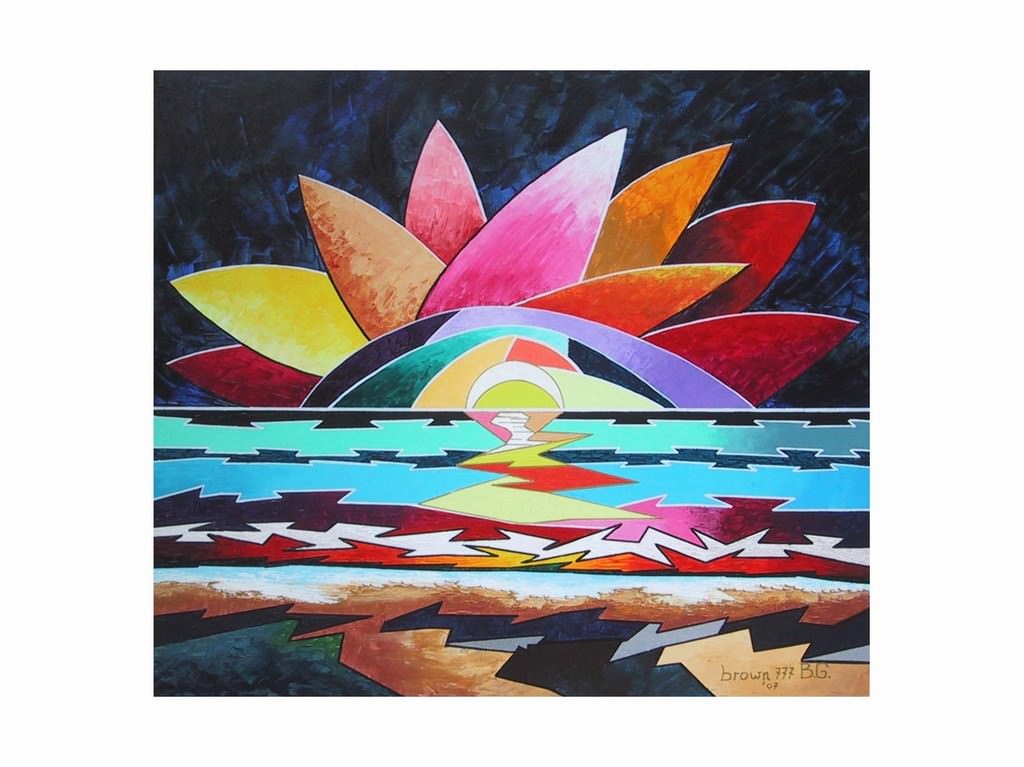 Ed è la “consonanza di sentimenti e di ritmi, di pause e di intrecci, di pensieri e di moti del cuore e della mente” – scrive Luciana Schiroli nella presentazione – “a condurre gradualmente Bruno Greco alla stesura di strette campiture cromatiche che si sommano e s’incontrano in un gioco chiaroscurale di forte effetto espressionista, come sta a dimostrare il “tramonto sulle risaie” del 2004. Quella figurazione, prima così esaltata da tocchi luministici e da effetti chiaroscurali, diventa ben presto lo strumento di una semplificazione che trova nelle Serie Brown 777 la sua sintesi più compiuta. Della percezione del reale resta il titolo dell’opera che acquista via via una sua propria autonomia: e gli spazi geometrici, triangoli o rombi che siano, quadrati o figure irregolari, altro non sono che puri ritmi che si confrontano nello spazio in modo dinamico e a volte vertiginoso”.
