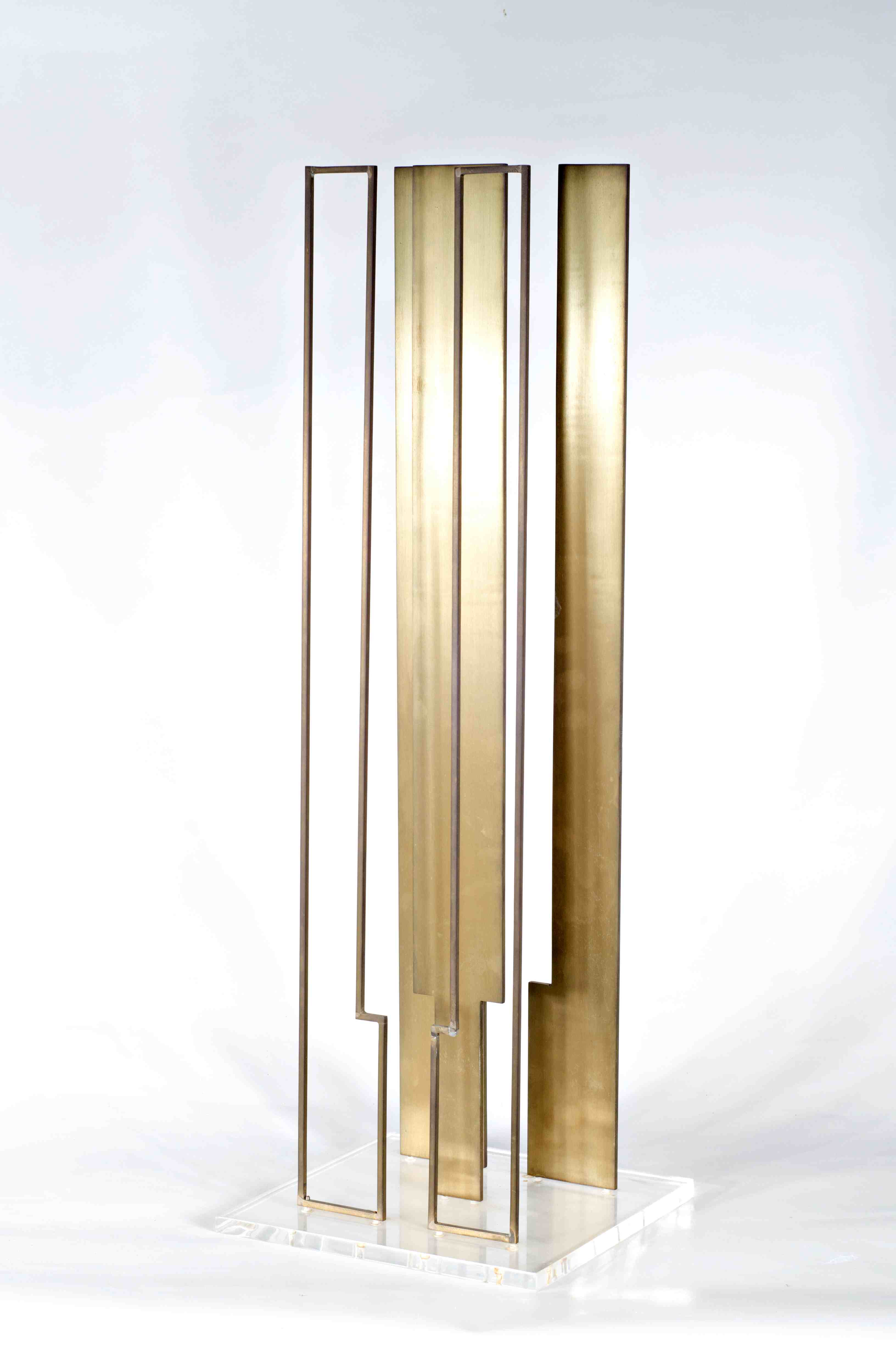 Questa volta è la storia di un approdo, forse più un “ritiro” per Bruno Martinuzzi, al riparo degli argini di Santa Maria in Punta, nel comune di Ariano nel Polesine, dove il Po, sinuoso e imprevedibile, avanza ad abbracciare il mare. Del resto lo scultore Bruno Martinuzzi è proprio un po’ francescano e un po pagano. E tale è appunto il suo immaginario artistico, che è realistico, insieme senza differenze. Il suo obiettivo artistico è un linguaggio “concreto” capace di tradurre le sue intuizioni in immagini reali: puri giochi di forma-colore che esaltano il ritmo e le interazioni formali, spesso liberandosi da qualsiasi riferimento figurativo.
