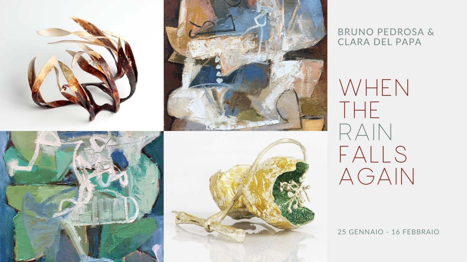 Per l'esposizione "When the Rain falls again", gli artisti si sono dunque confrontati con questa emozione di rinascita, di rigenerazione e di scoperta che conoscono e ricordano dalla loro infanzia. Bruno Pedrosa e Clara Del Papa hanno creato una mostra che è una celebrazione alla vita, un invito alla speranza per il futuro e al piacere della continua scoperta di nuovi mondi.