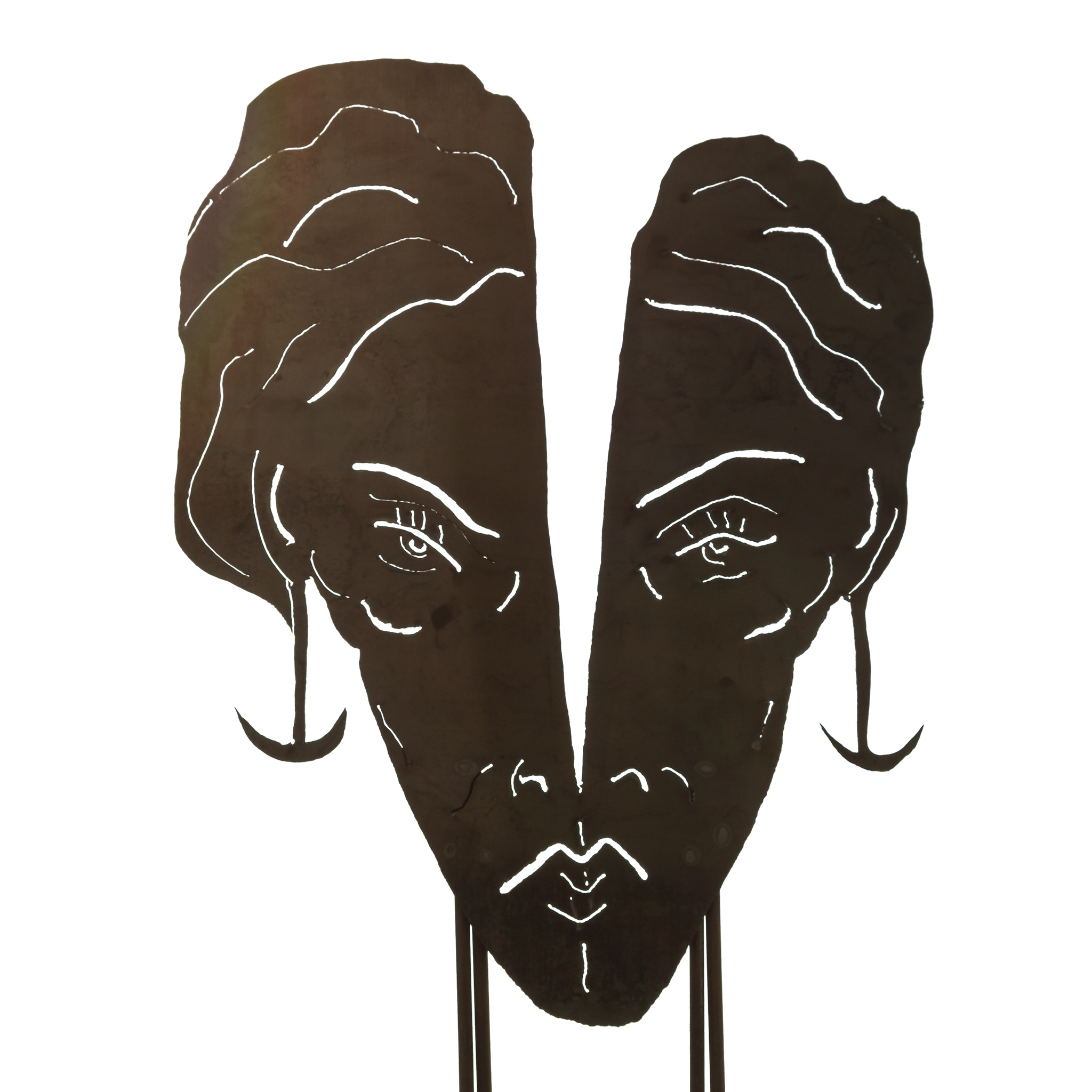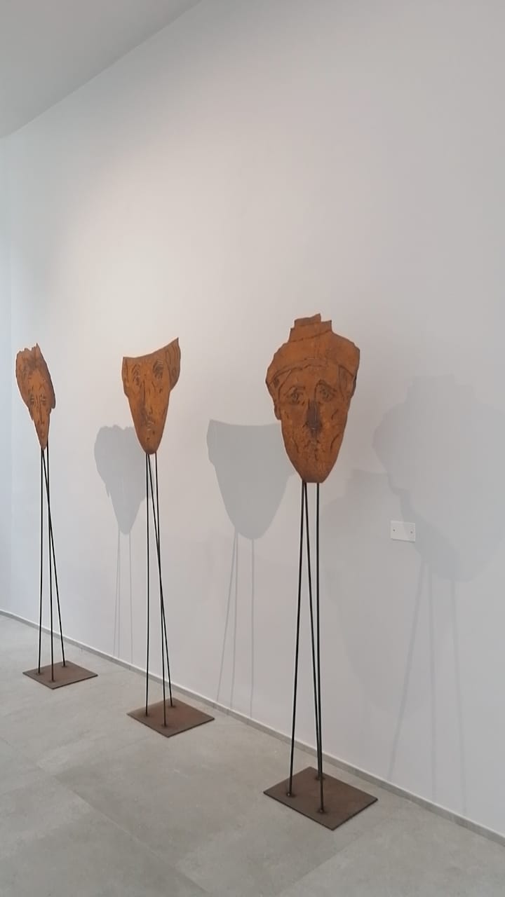 Bruno Pellegrino è reduce da un'importante mostra al MAXXI di Roma. Autore di diversi saggi, è stato un esponente politico e ha ricoperto la carica di Senatore della Repubblica dopo essere stato segretario del Club Turati di Milano. Artista intensamente espressivo, ed espressionista, da sempre impegnato nel campo della ricerca figurativa, è dotato di una forte armonia attuale e di un personale senso plastico della materia. Dal grezzo ferro ricava, nelle sue sculture, opere figurative manifestando una versatilità fondata su un attento studio dei classici e su una moderna capacità di rielaborazione fantastica. Le grandi maschere presenti in mostra, poste a dialogo con le sculture “Cosmic Bullets” di Nicola Rivelli, rappresentano una straordinaria vitalità espressiva la cui finalità è quella di indagare l’ambito, la sfera esistenziale e psicologica dell’essere umano. La sensazione è quella di sentirsi osservati, interpellati, ma anche accompagnati e scortati lungo il sentiero che apre all’esperienza di un viaggio visivo tra volti anonimi o forse familiari, reali o forse soltanto immaginari.