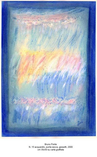 Il neoromantico sentire di Bruno Ponte - scrive Accerboni - si esplicita attraverso la stesura armonica di messaggi cromatici vivaci e vitali ma delicati, come viole o piccole gemme. Con grande eleganza l’artista li assembla sulla tela, avvalendosi di una gentilezza gestuale, che a volte ricorda il tocco di De Pisis, e di un’inclinazione lirica intensa, ma assolutamente libera da schemi e risolta con originale levità. La coinvolgente, eppure sommessa e calibrata emotività che ne trascende, ci conduce a cogliere nell’universo del 2000 il filo seducente di un racconto modernamente fiabesco e incantato, declinato con tecnica istintivamente ineccepibile.