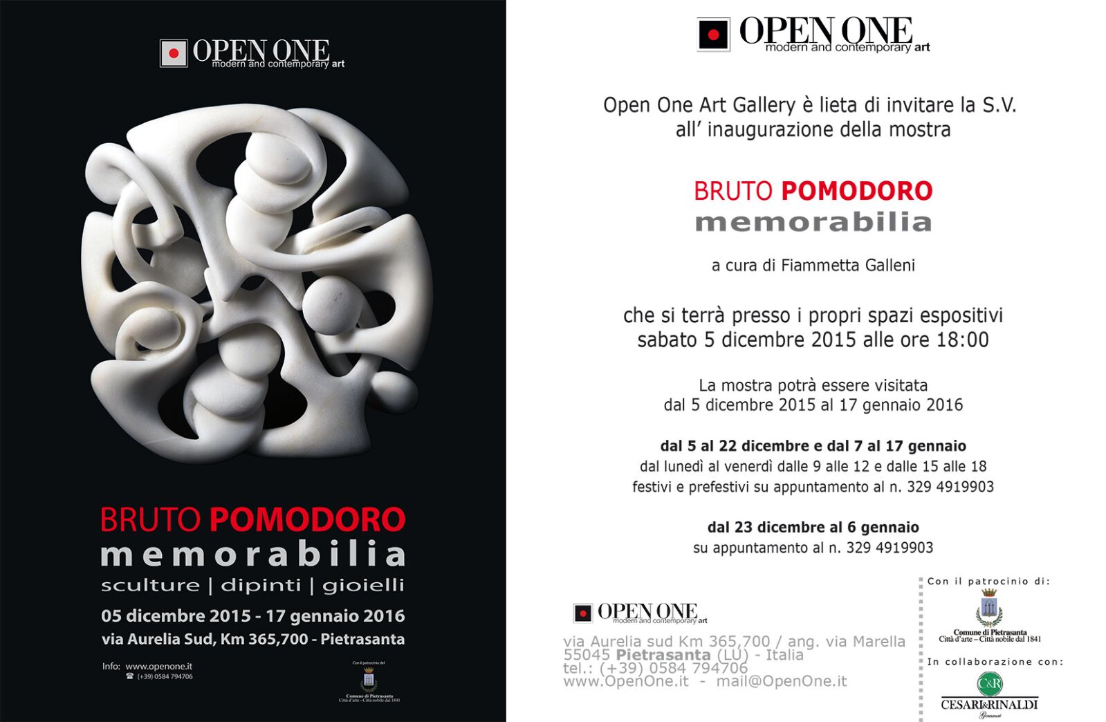 Inaugura sabato 5 dicembre, ore 18.00, la mostra dal titolo “Memorabilia” dell'artista Bruto Pomodoro alla Galleria Open One di Pietrasanta.