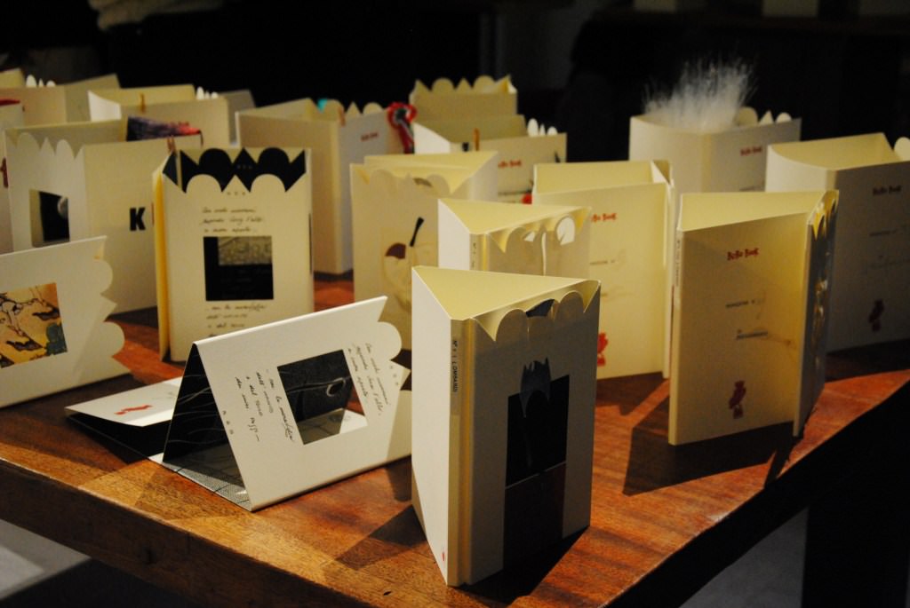 Manualità e creatività s’incontrano sul comune supporto delle fustelle, i libretti dalle cinque facciate che si aprono come un piccolo teatro dalle diverse angolazioni, contaminate da un racconto d’arte e di ideazione compiuto.