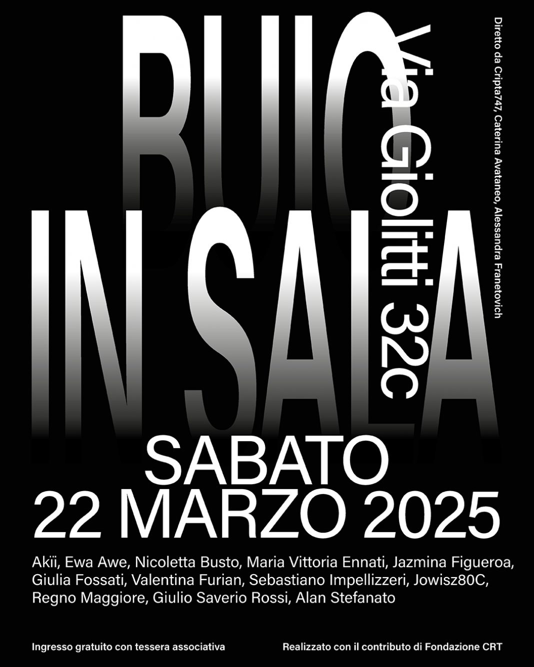 Buio in sala è un progetto a cura di Cripta747, Caterina Avataneo, Alessandra Franetovich, realizzato grazie al sostegno di Fondazione CRT.