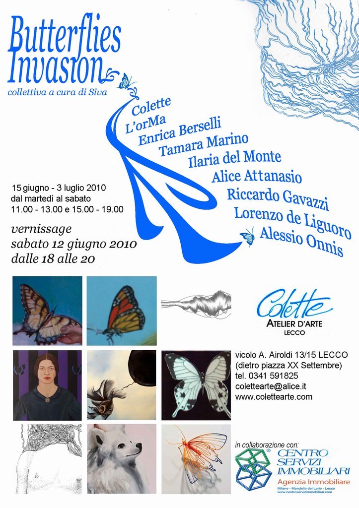 L’Atelier d’arte Colette ha il piacere di celebrare la primavera presentando al pubblico Butterflies Invasion, una collettiva che raccoglie i lavori di nove giovani artisti, selezionati dal curatore, sul tema delle farfalle.