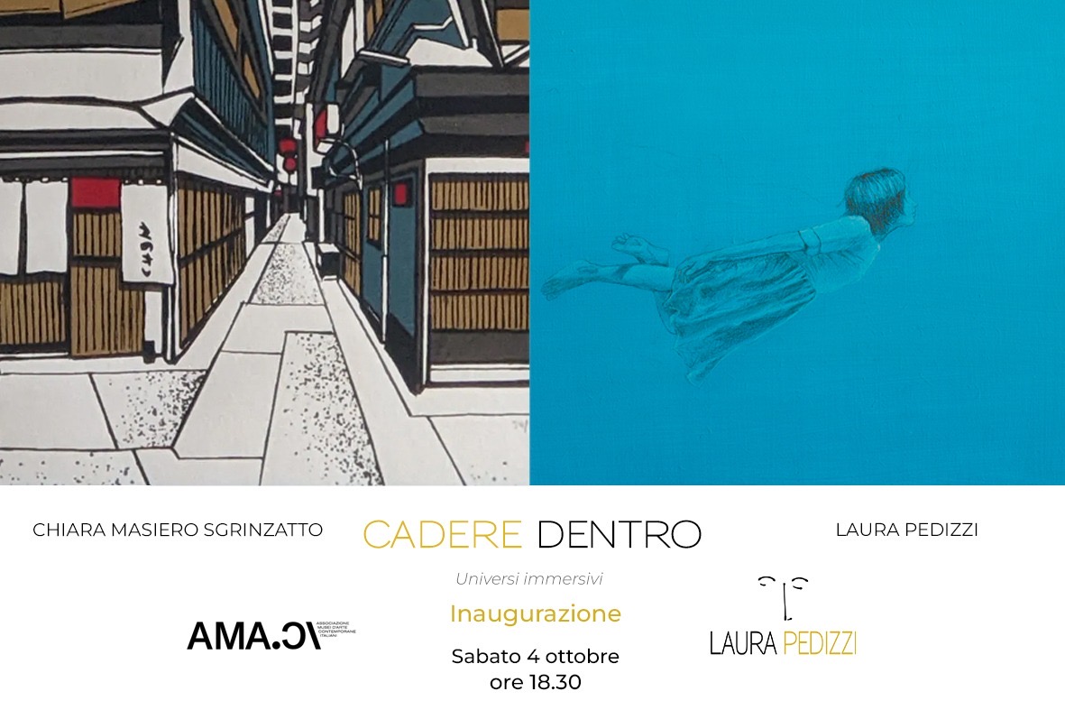 Tanti sono i modi di entrare in un’opera d’arte: cadendo metaforicamente, come nei lavori di Laura Pedizzi, o letteralmente, come nei disegni immersivi di Chiara Masiero Sgrinzatto.