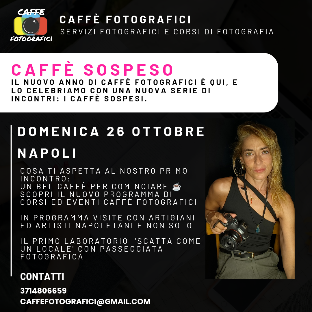 Il primo appuntamento si terrà Domenica 26 ottobre ore 10:00 presso la sede napoletana di Caffè Fotografici, Quartiere Sanità, e si configura come un evento speciale di inaugurazione.
