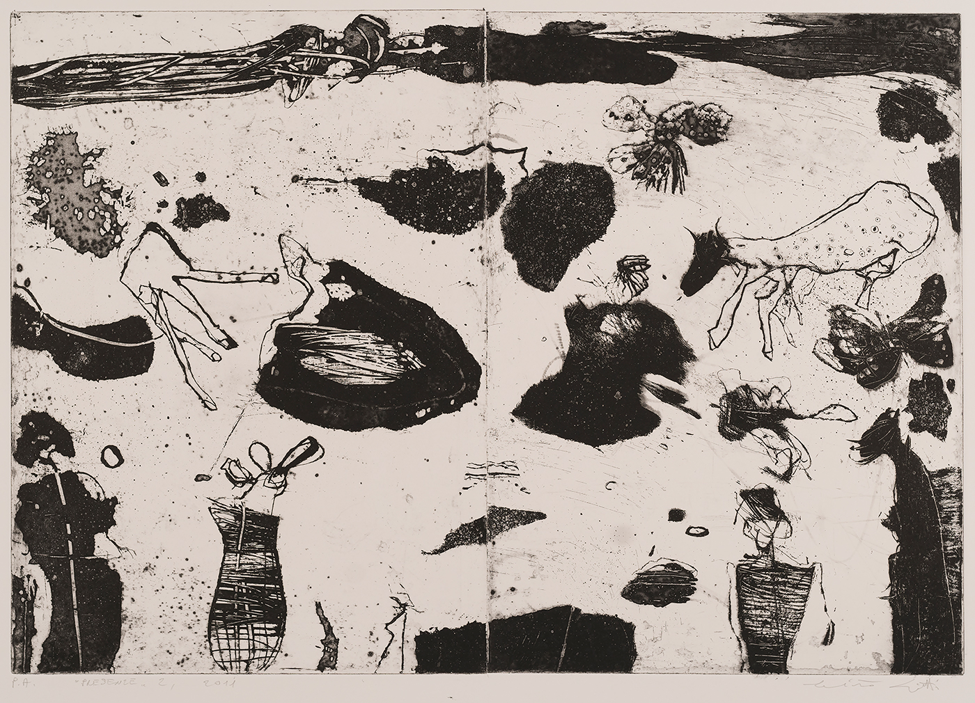I titoli delle incisioni esposte – “Divenire”, “Frammenti”, “Margini”, “Presenze”, “Situazioni”, “Visioni” – rimandano ad altrettanti cicli ai quali l’artista ha lavorato nel tempo e che traducono in
