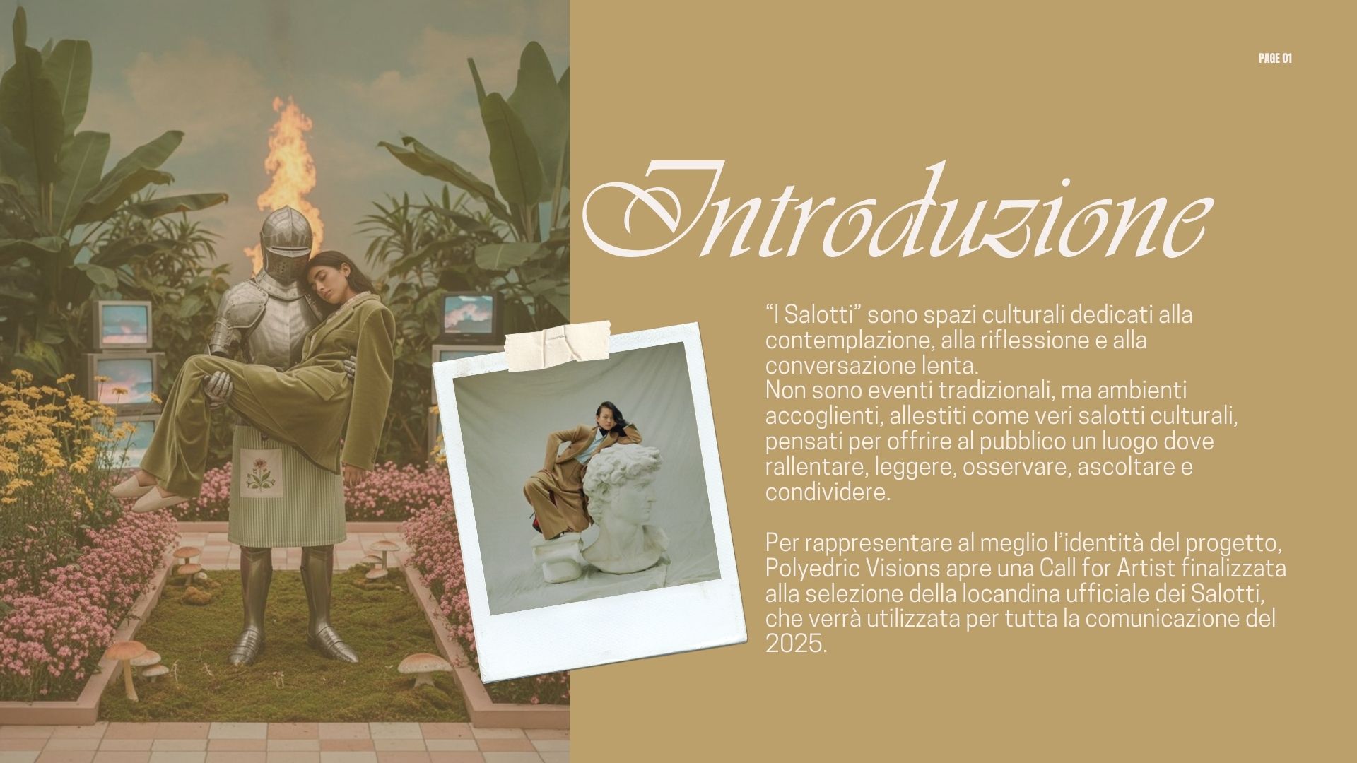 ✨ I Salotti delle Muse cercano l’immagine ufficiale per l’edizione 2026: un artwork originale, riconoscibile e capace di trasformare l’essenza dei Salotti in un simbolo visivo. Tempo lento, relazione, creatività. Inviateci le vostre migliori idee a polyedricvisions@gmail.com