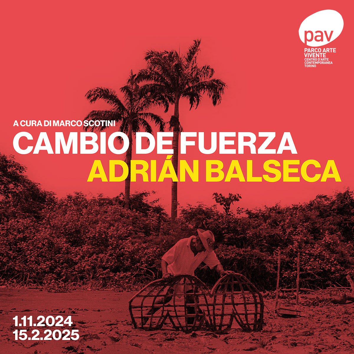 Venerdì 1 novembre 2024 il PAV Parco Arte Vivente, nella cornice di Artissima, presenta la prima mostra personale in Italia dell'artista ecuadoregno Adrián Balseca (1989) a cura di Marco Scotini. La mostra indaga il ruolo dell’essere umano come agente nell'ecosistema ponendo una lente sui rapporti tra economia, ecologia e memoria, così come sulle dinamiche di potere legate all’estrattivismo e allo sfruttamento della natura.