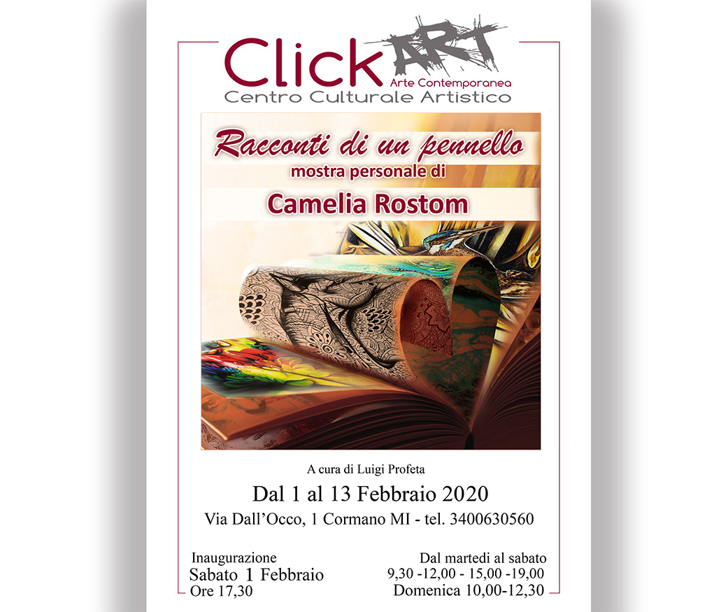 La mostra ‘’Racconti di un pennello’’ è la sesta tappa personale del percorso di Camelia Rostom art., un connubio di espressioni che convivono e si intrecciano.