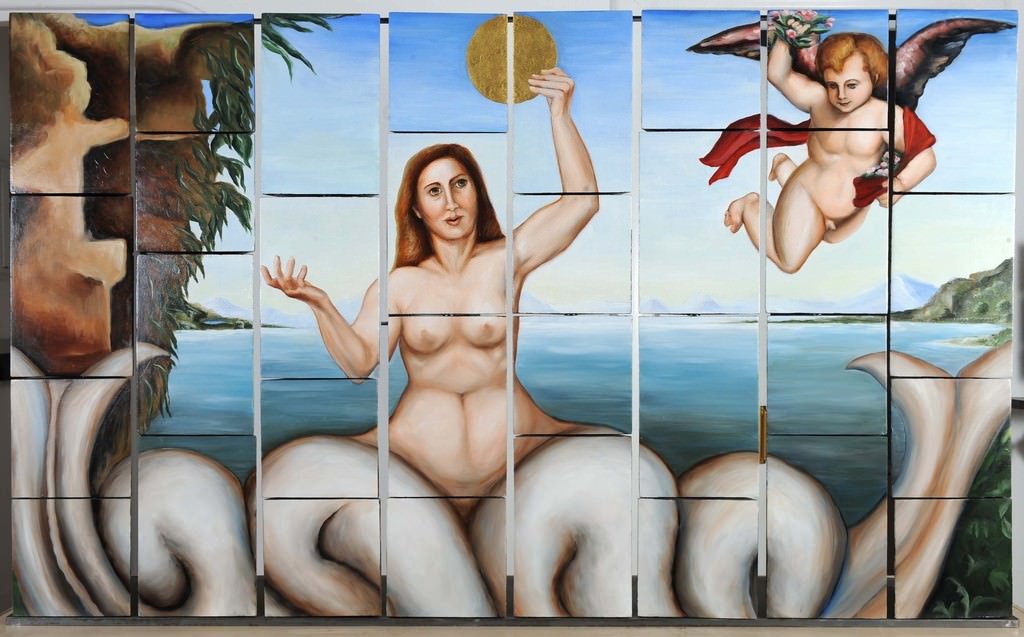 Ma è soprattutto quando Camilla recupera alcuni sublimi modelli di arte antica – l’Uomo vitruviano di Leonardo, l’Adamo ed Eva di Tiziano, le Tre Grazie di Raffaello, le Allegorie di Bronzino –, per «distruggerli» e subito farli risorgere in un ordito visivo mutabile e mai definitivo, che, consapevolmente, compie una rivisitazione, se vogliamo, anche dissacrante, nella quale l’aspetto più pregevole è la lontananza mantenuta da ogni citazione di mero valore illustrativo.