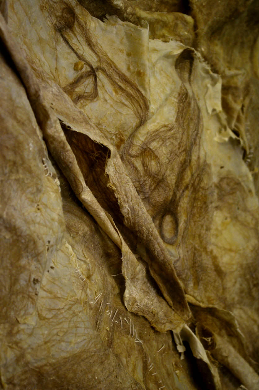 Vi racconto una storia: una nuova vita, un dolore, un trauma, il rigetto, uno squarcio; è qui che idealmente l'artista si innesta con le sue leggerissime carte di riso, con ago e filo quasi a ricucire le anime lacerate nella loro relazione divenuta innaturale.