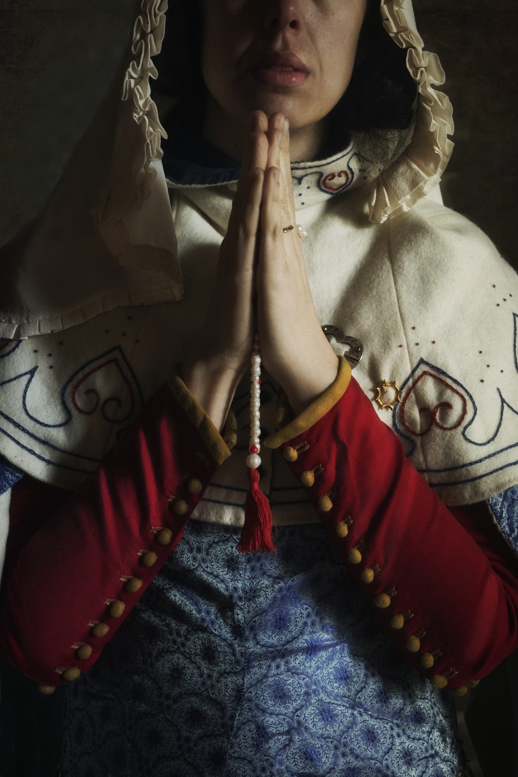 Quella che Balossini fa è inserirsi volontariamente in una fotografia di nicchia, per addetti ai lavori, in cui scattare in bianco e nero non ha senso, non è usando questo espediente che si rende un’atmosfera passata, il mondo è sempre stato a colori e sono i colori quindi a fare da padroni ora terrosi e spenti di una veste monastica ora brillanti di un abito nobiliare, uniti agli ori e argenti ed al metallo di una spada di un cavaliere.